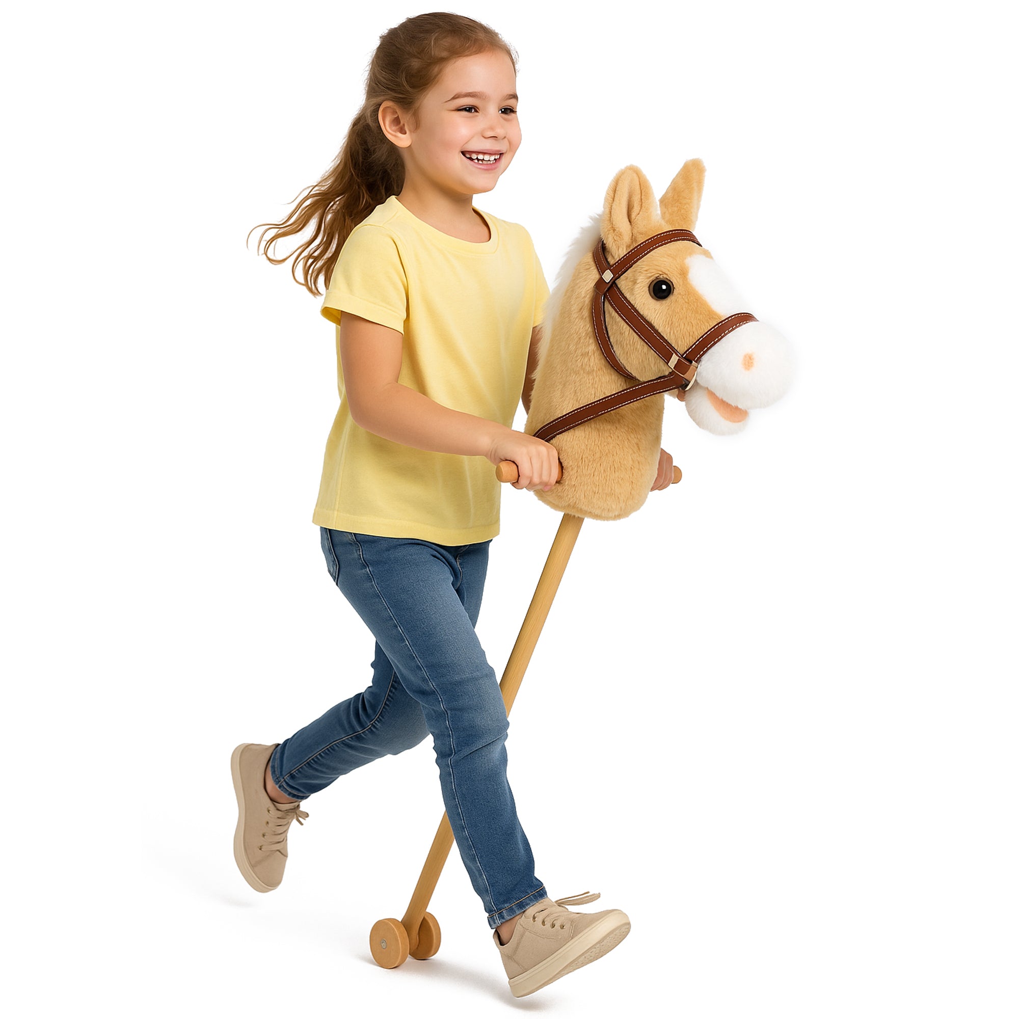 HOBBY HORSE Duży koń na kiju (kółka / na baterie) Kremowy A3