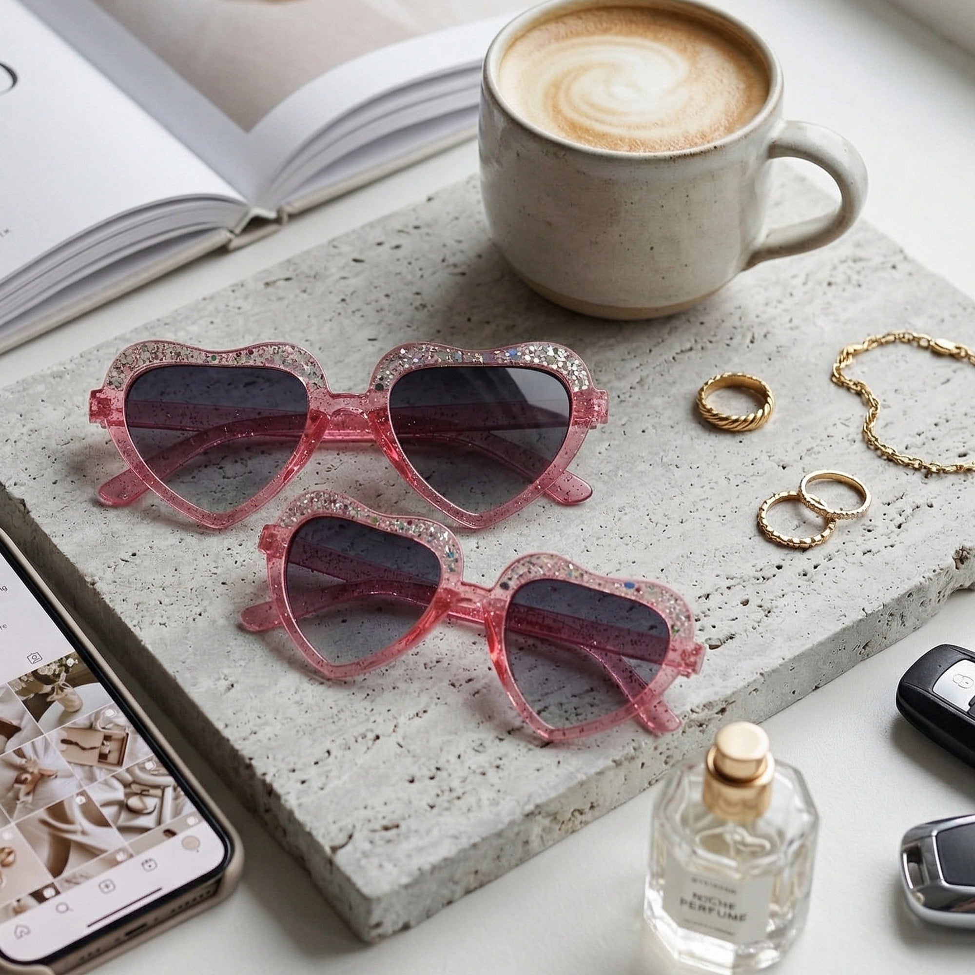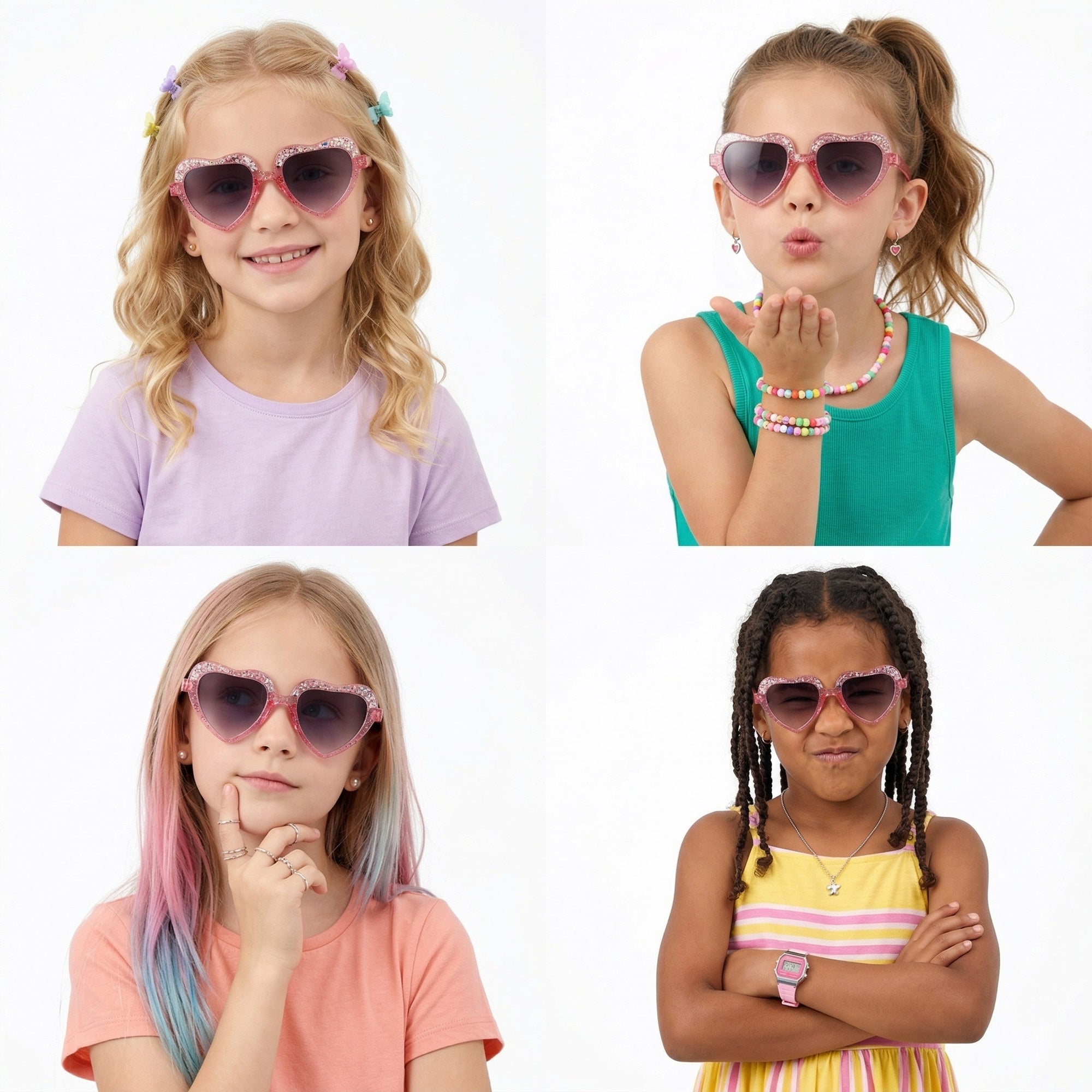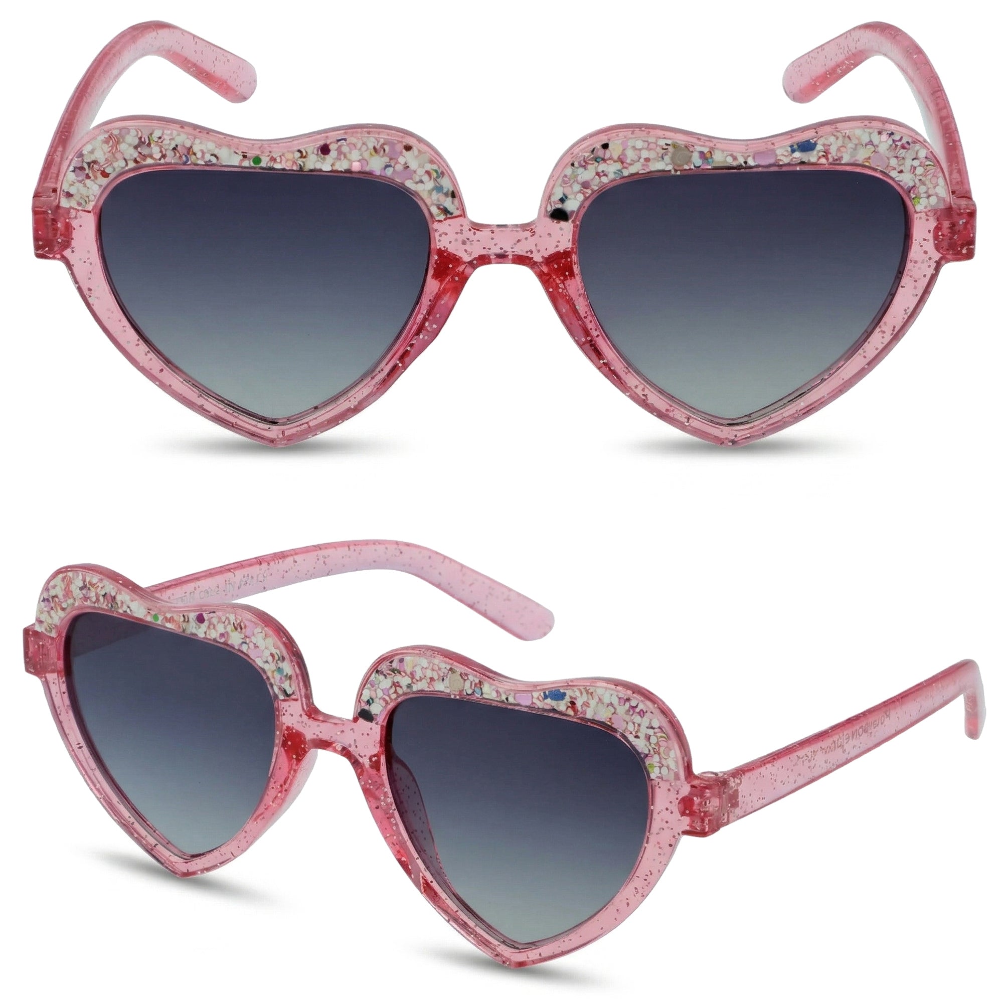 Okulary Rosy Heart to stylowe okulary przeciwsłoneczne dla dziewczynek, z różowymi plastikowymi oprawkami w kształcie serca i pełną konstrukcją zapewniającą stabilne dopasowanie. Czarne, polaryzacyjne szkła z filtrem UV-400 (kat. 2) skutecznie chronią oczy i poprawiają komfort widzenia w słoneczne dni.