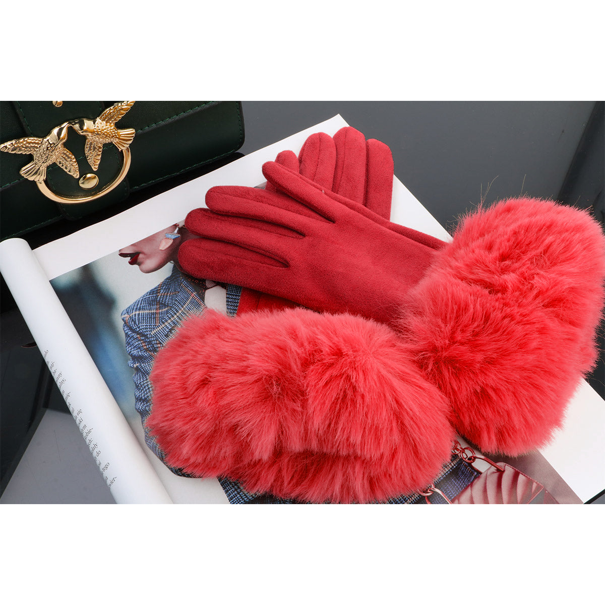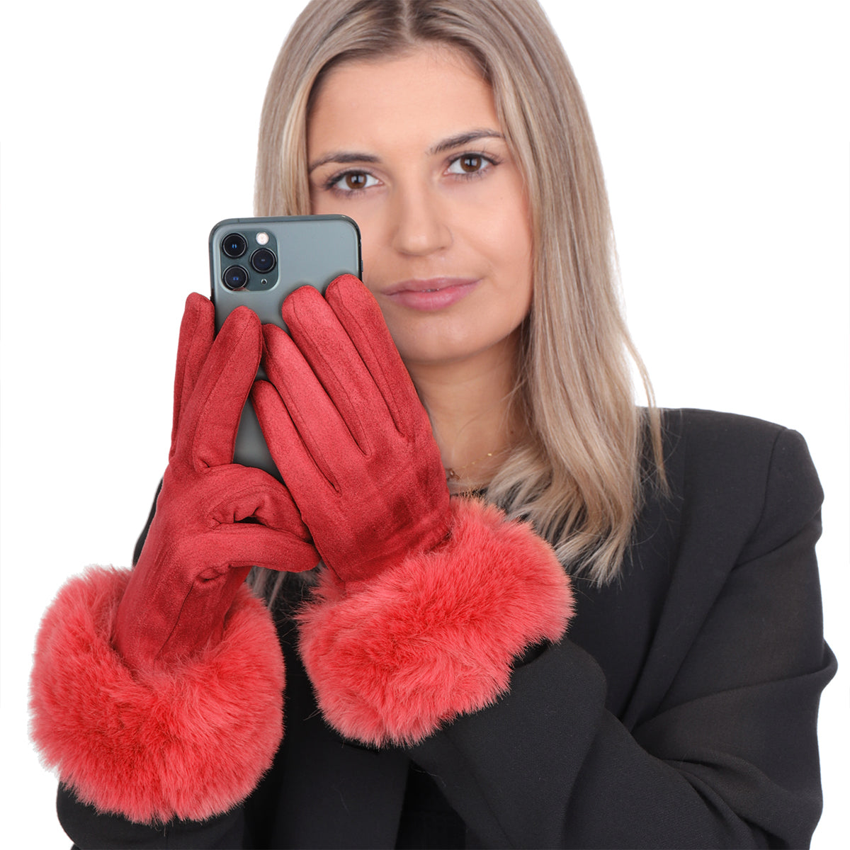 Rękawiczki WINTER FUR TOUCH LIGHT RED