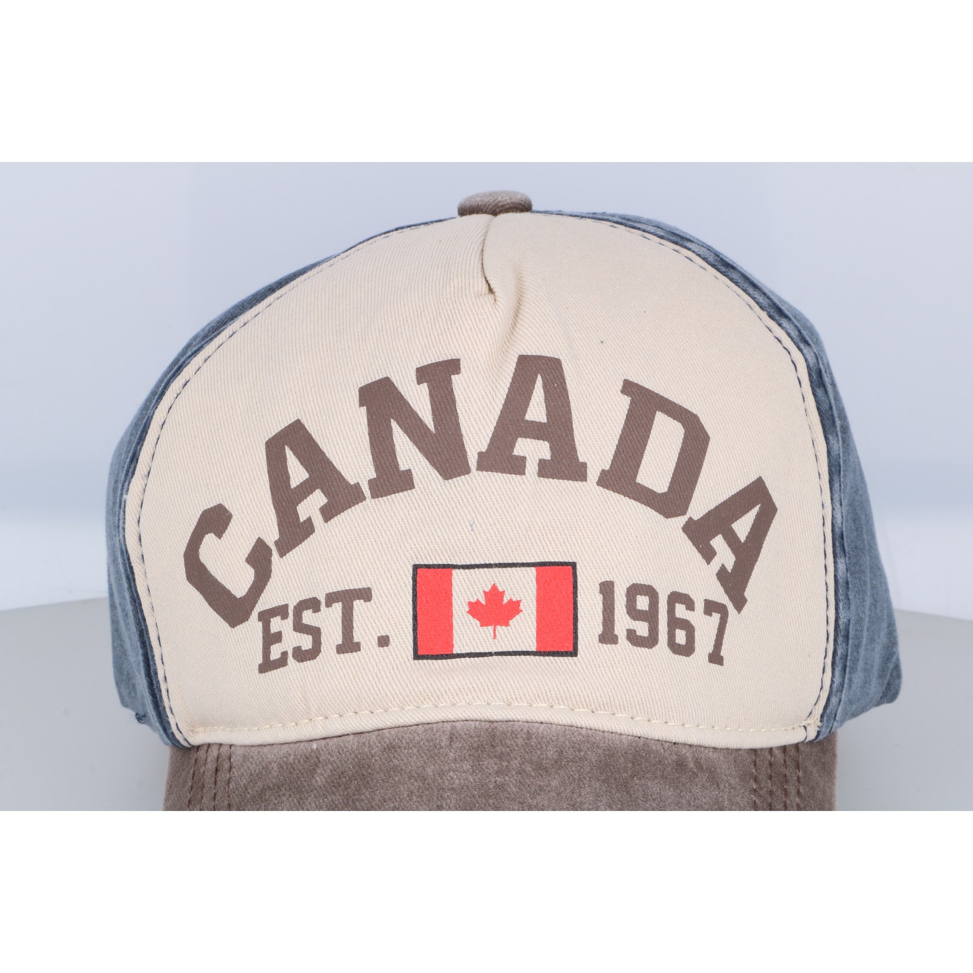 Czapka z daszkiem CANADA EST.1967 pasuje zarówno do damskich, jak i męskich stylizacji. Czapeczka wykonana w 100% z bawełny posiada modne przetarcia, które nadają jej uroku i charakteru stylu vintage jeans. Regulowany pasek pozwala na idealne dopasowanie do kształtu głowy.