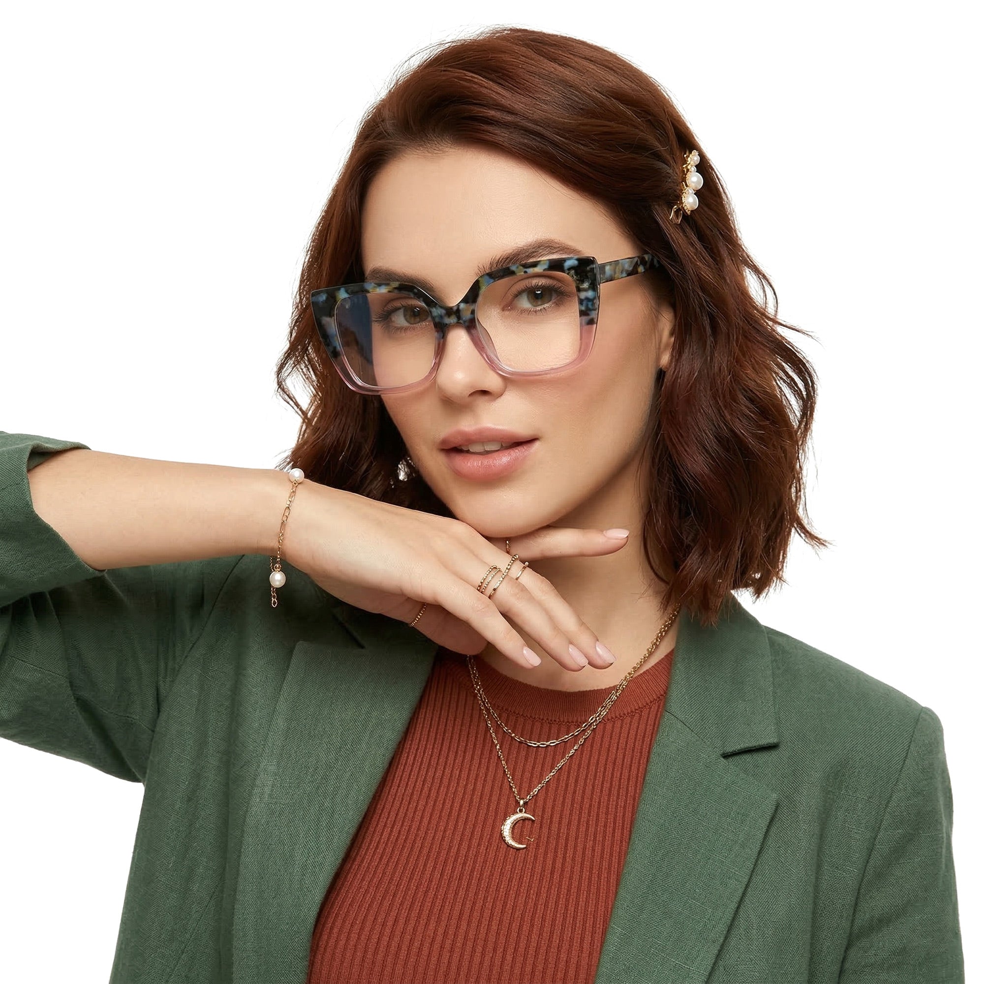 Kwadratowe, wielokolorowe oprawki AURORA PRISM wykonano z trwałego poliwęglanu. Te damskie okulary do komputera posiadają bezbarwne soczewki typu zerówki, wyposażone w powłokę blue-light oraz antyrefleks. Skutecznie redukują one uciążliwe odbicia i blokują promieniowanie z ekranów, ułatwiając pracę biurową czy nocną jazdę autem. Pełna konstrukcja ze stałymi noskami umożliwia bezproblemową wymianę bazowych szkieł na odpowiednią korekcję.