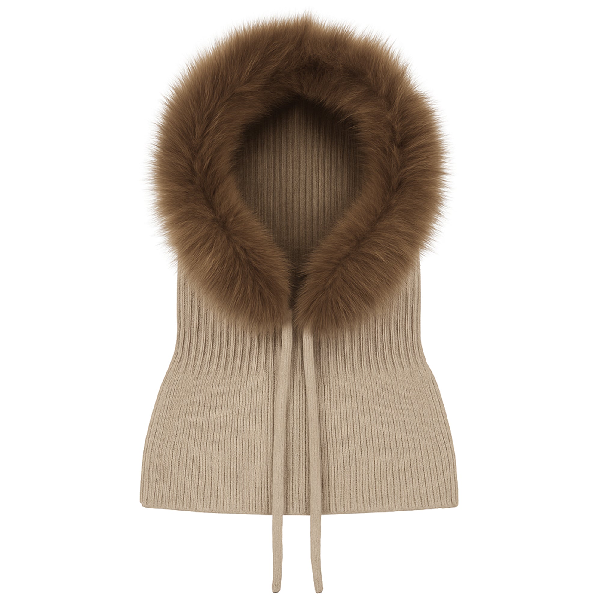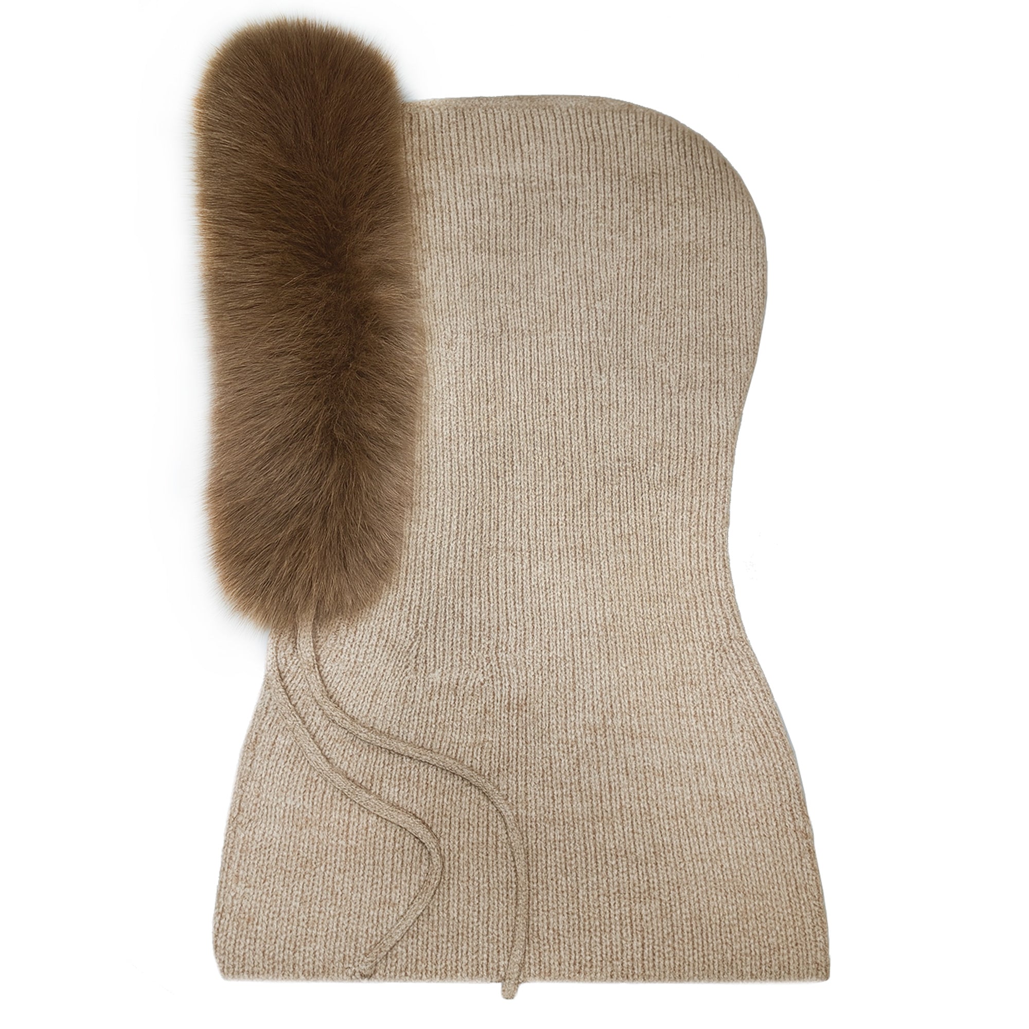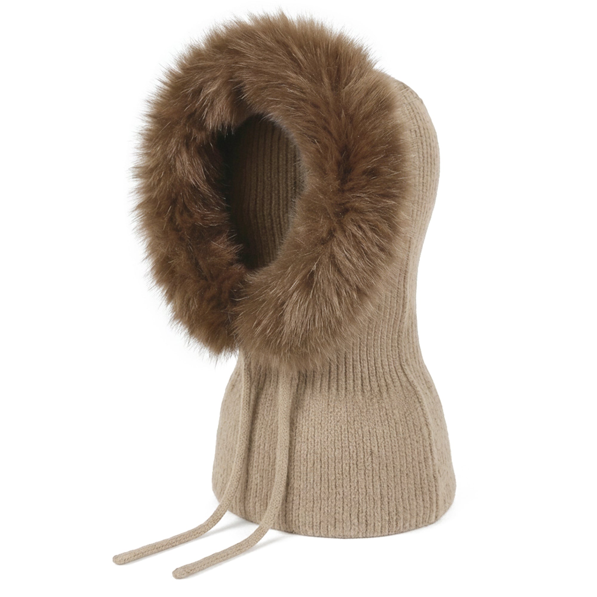Cappuccino KAPTUR komin BALACLAVA z FUTERKIEM kominiarka CZAPKA damska