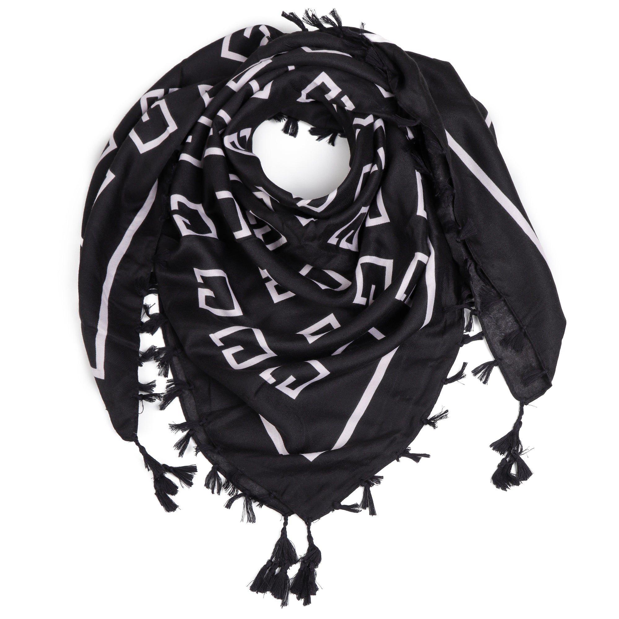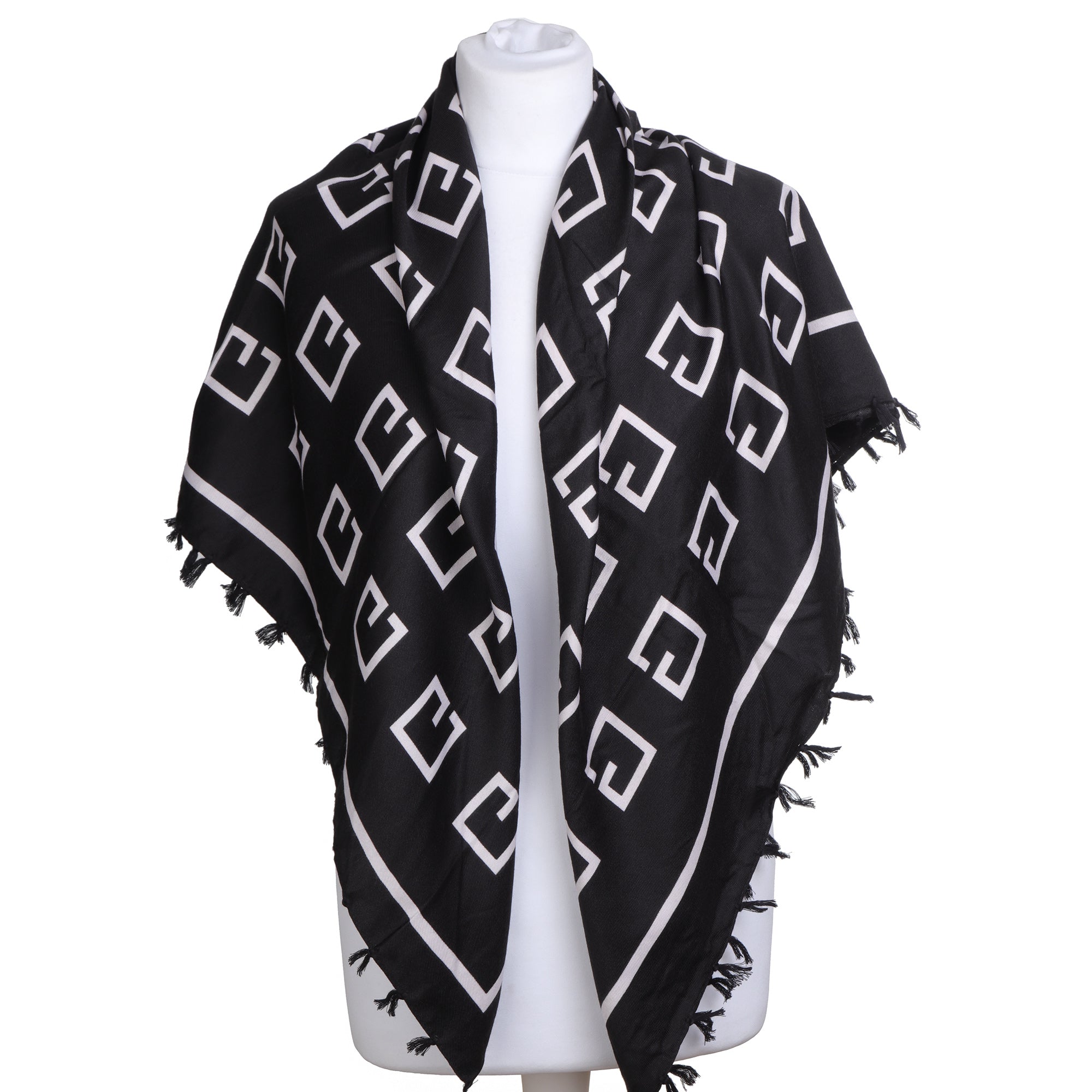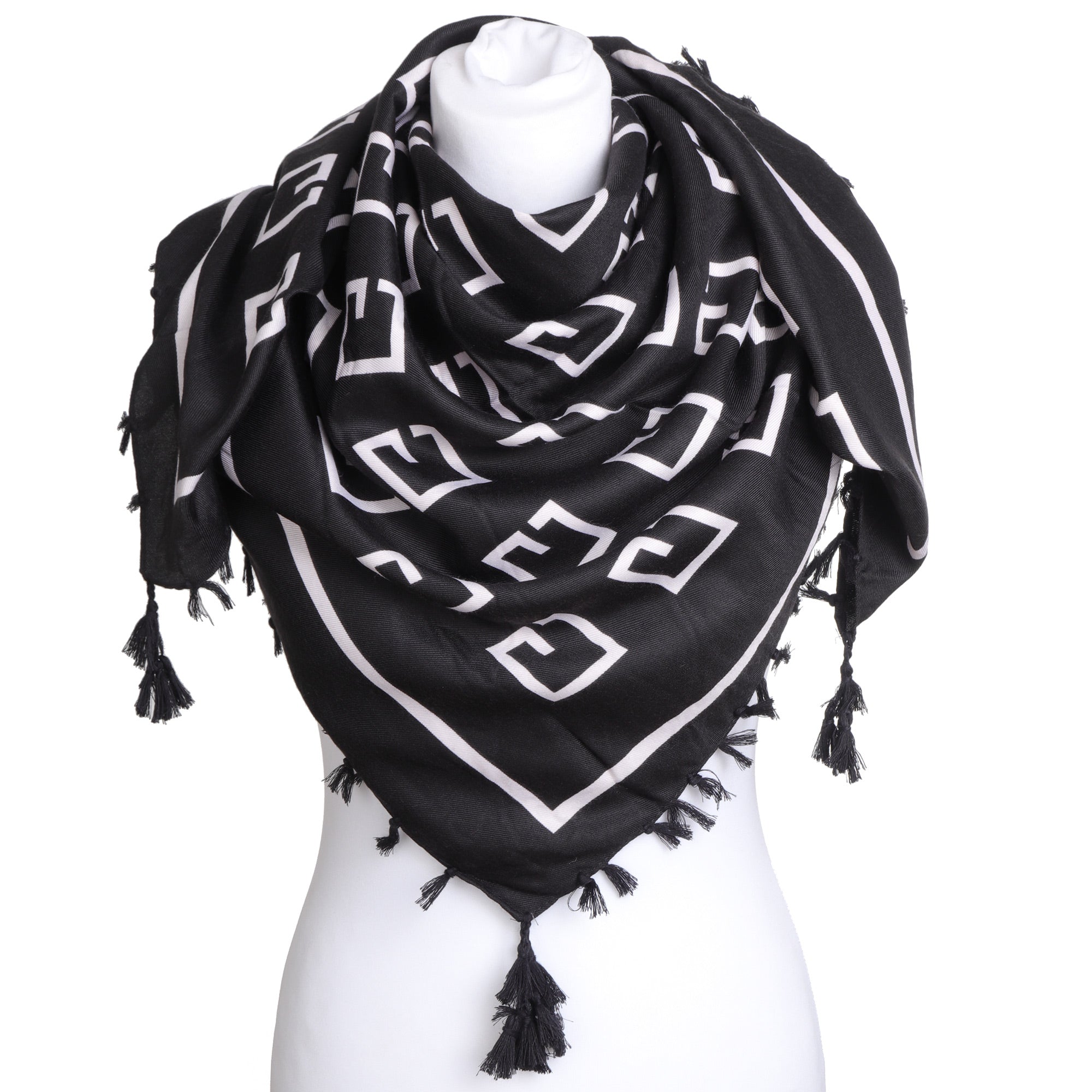 Chusta z geometrycznym wzorem to połączenie klasyki z nowoczesnością. Delikatny szary odcień przełamany czarnymi akcentami sprawia, że jest to idealny dodatek do każdej stylizacji – od codziennych po bardziej eleganckie. Lekki, przewiewny materiał zapewnia komfort noszenia, a frędzle na krawędziach dodają całości uroku. Uniwersalny kształt i rozmiar pozwalają nosić chustę na różne sposoby – jako klasyczny szalik, narzutkę czy ozdobę na torebkę.