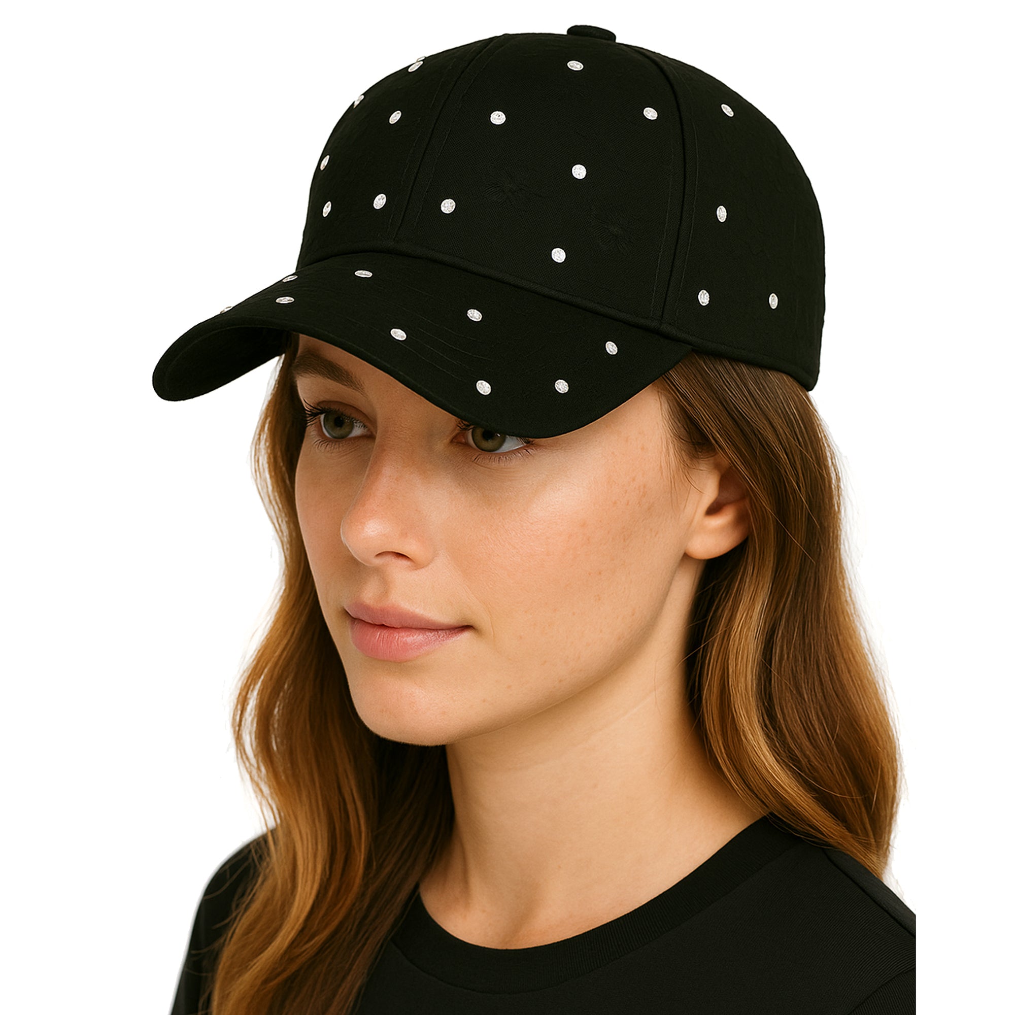 Czapka FloralKiss to wyjątkowo kobiecy i elegancki model, który przyciąga uwagę subtelnym zdobieniem. Uszyta z jasnego, czarnego materiału o lekko lnianej fakturze, ozdobiona została haftowanymi kwiatami w tonacji materiału. Każdy kwiat wzbogacony jest o drobne, połyskujące kryształki, które dodają czapce blasku i delikatnego efektu glamour. Kwiatowy haft w połączeniu z błyszczącymi detalami tworzy romantyczny, lekko vintage’owy styl – idealny na wiosnę, letnie spacery czy festiwale. To nie tylko funkcjonalny dodatek chroniący przed słońcem, ale także wyrazisty element stylizacji.