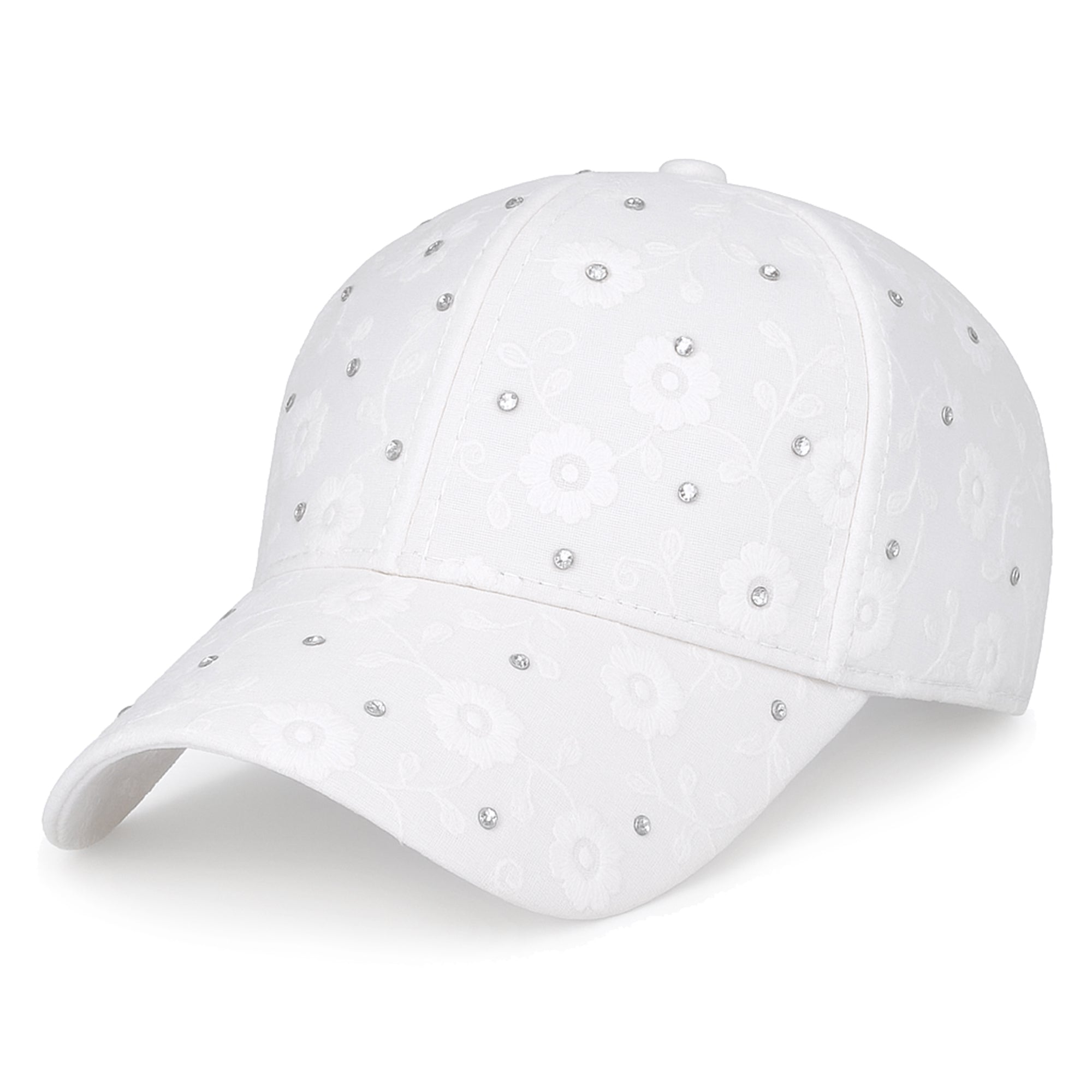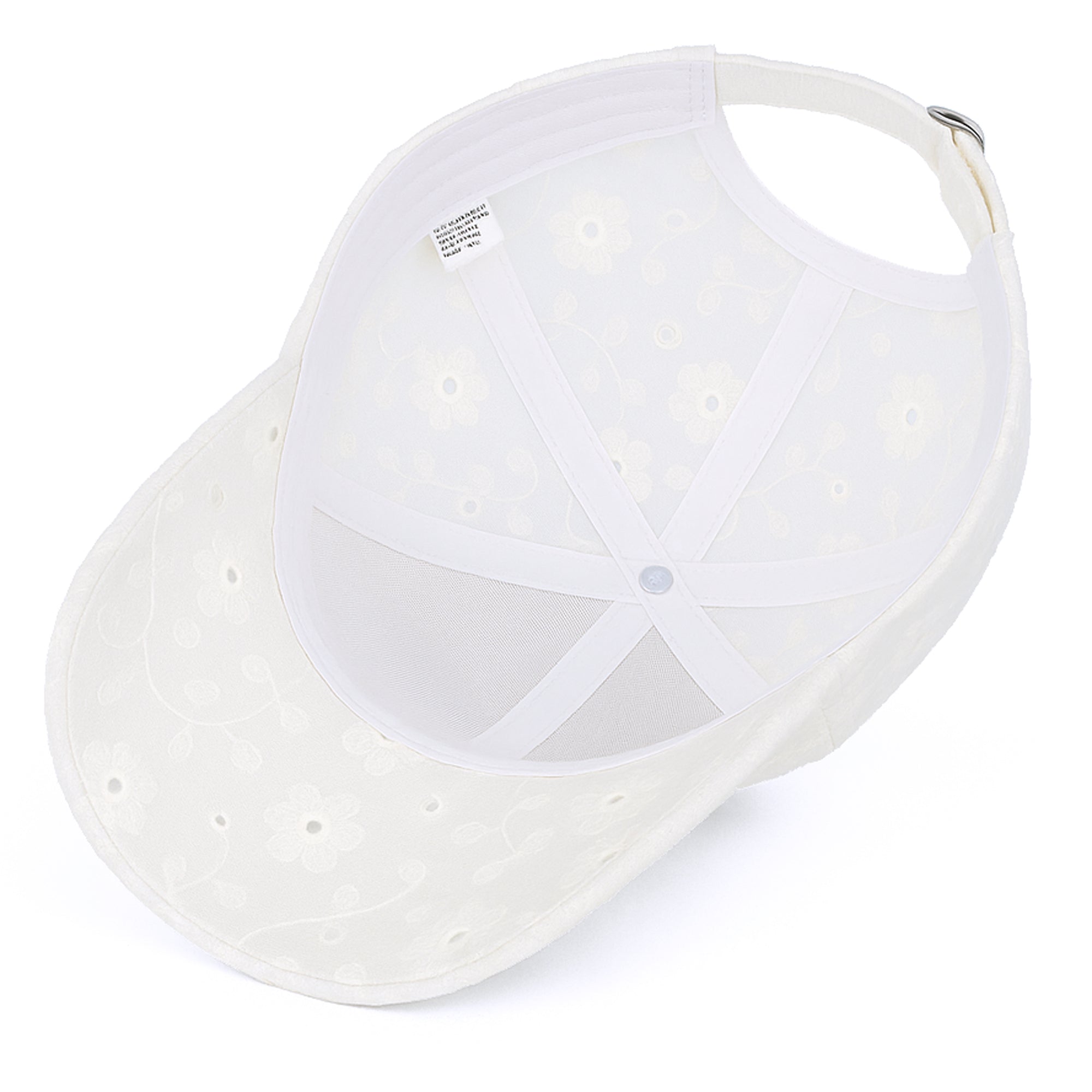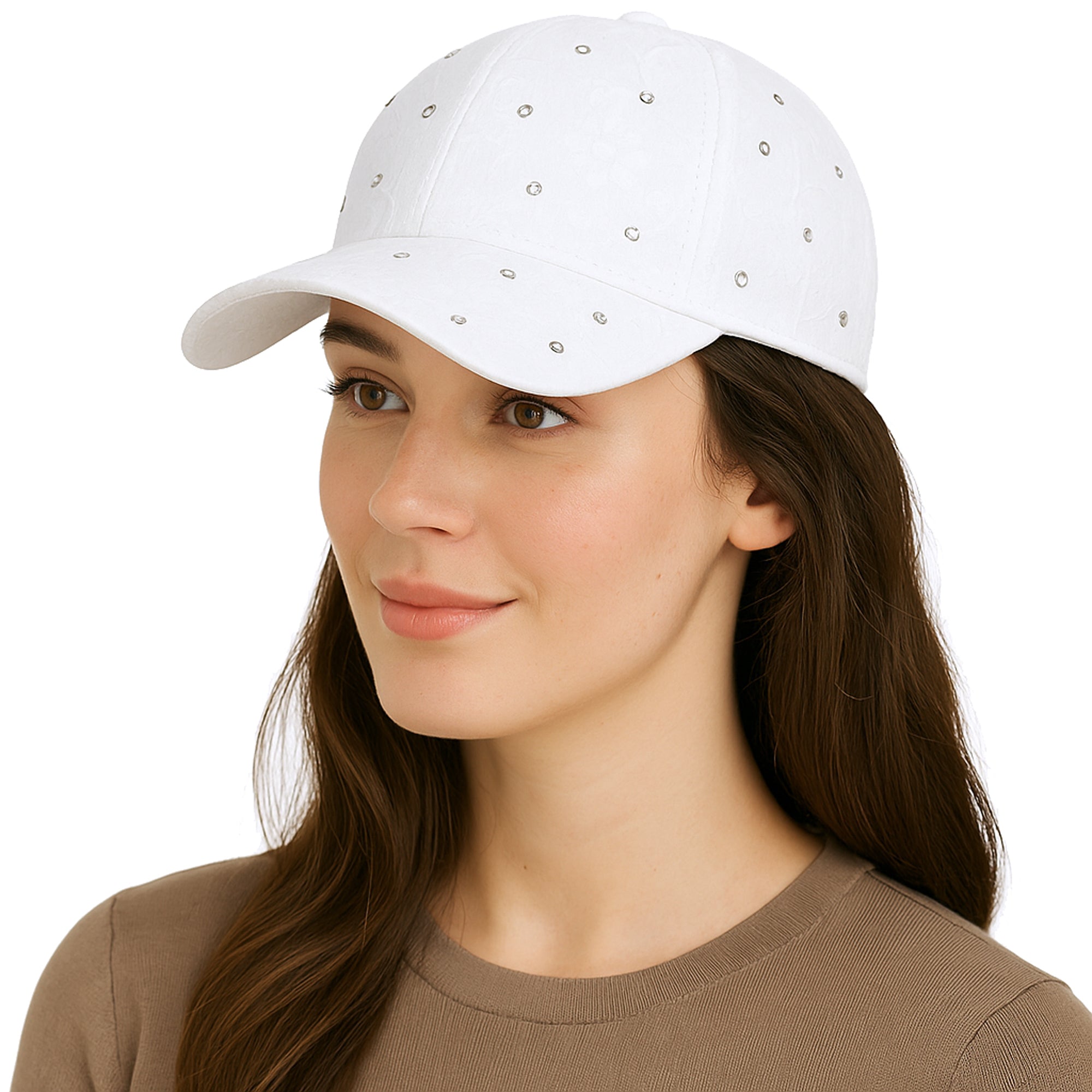 Czapka FloralKiss to wyjątkowo kobiecy i elegancki model, który przyciąga uwagę subtelnym zdobieniem. Uszyta z jasnego, białego materiału o lekko lnianej fakturze, ozdobiona została haftowanymi kwiatami w tonacji materiału. Każdy kwiat wzbogacony jest o drobne, połyskujące kryształki, które dodają czapce blasku i delikatnego efektu glamour. Kwiatowy haft w połączeniu z błyszczącymi detalami tworzy romantyczny, lekko vintage’owy styl – idealny na wiosnę, letnie spacery czy festiwale. To nie tylko funkcjonalny dodatek chroniący przed słońcem, ale także wyrazisty element stylizacji.