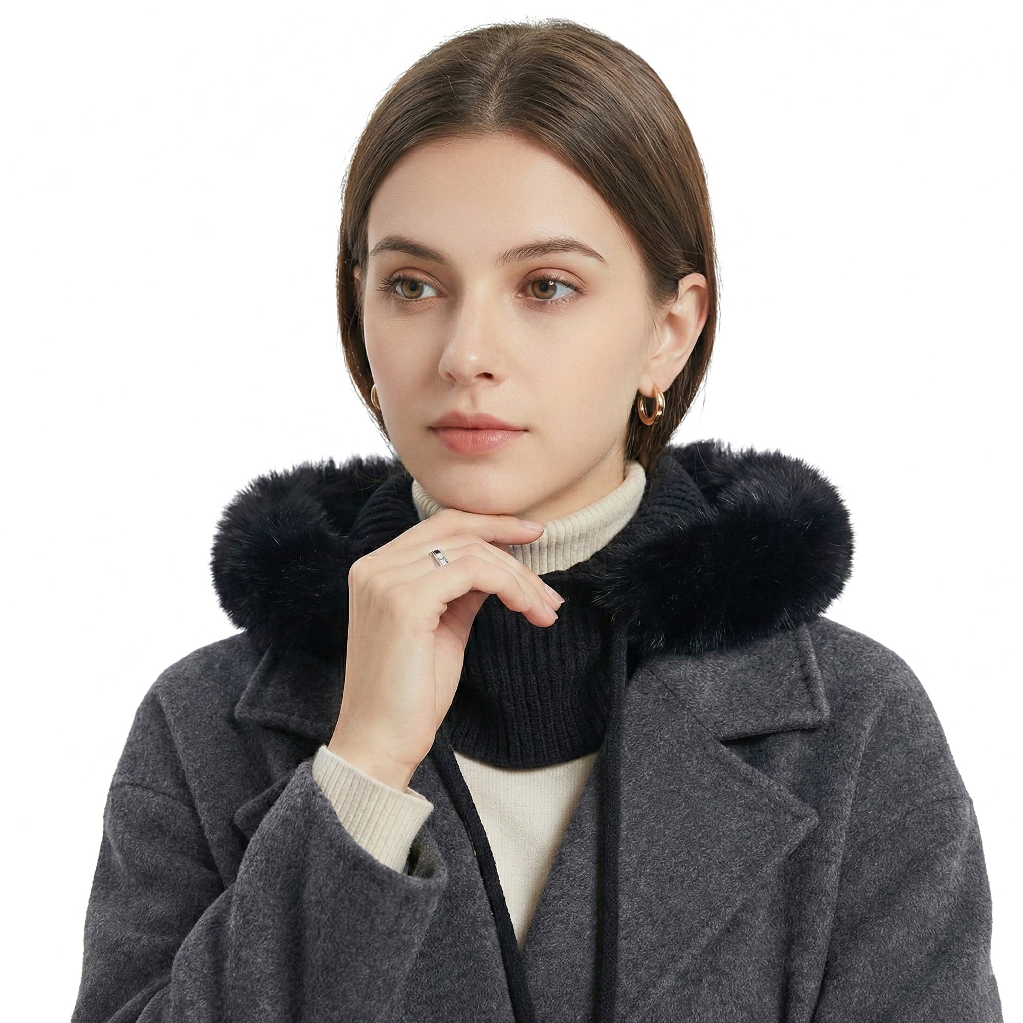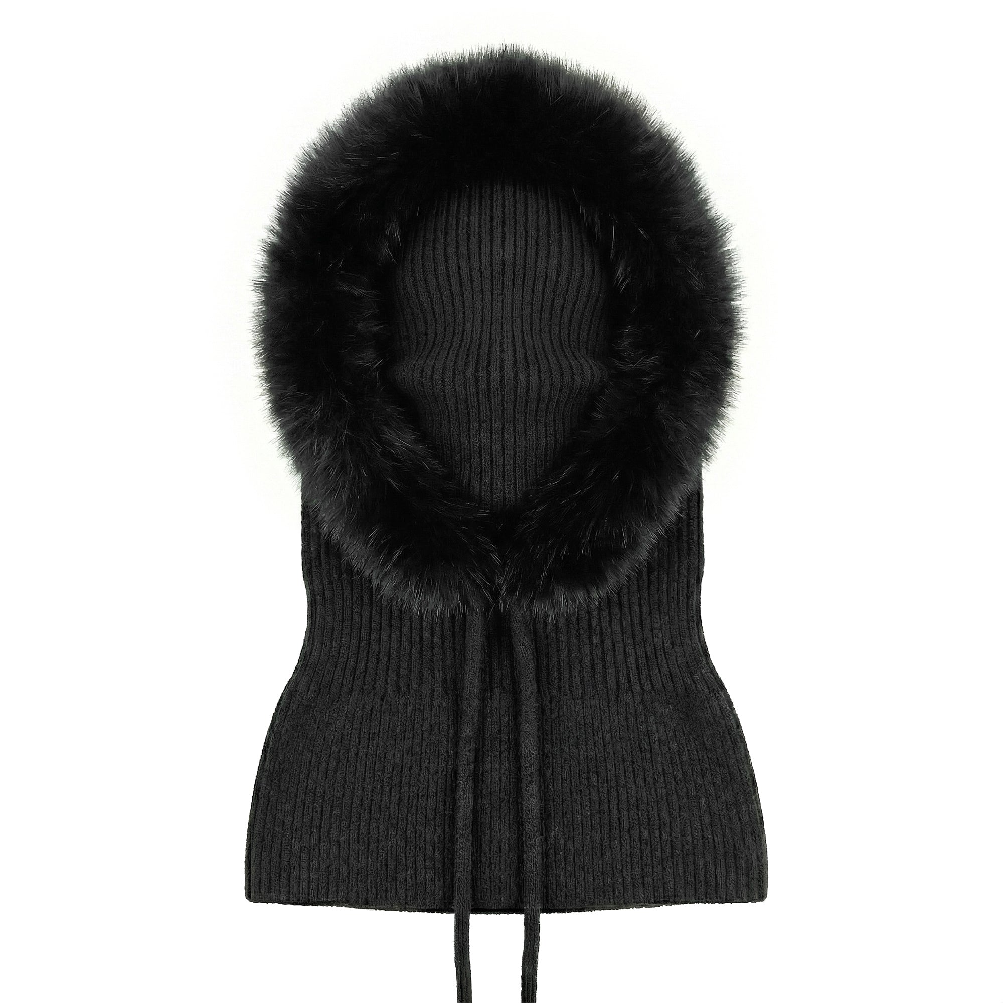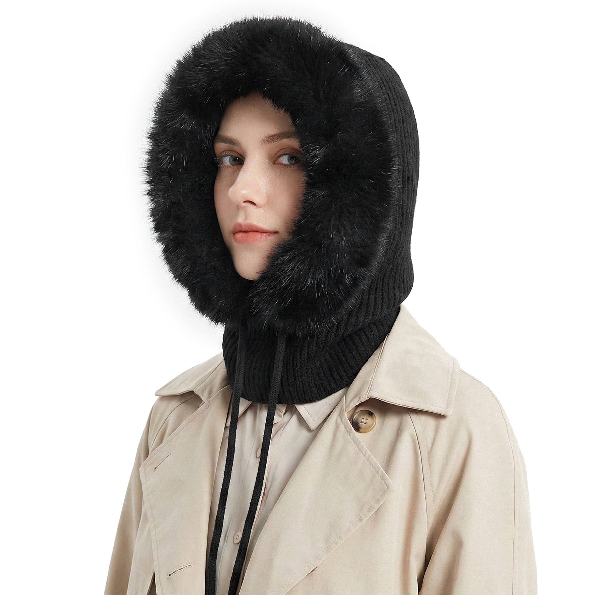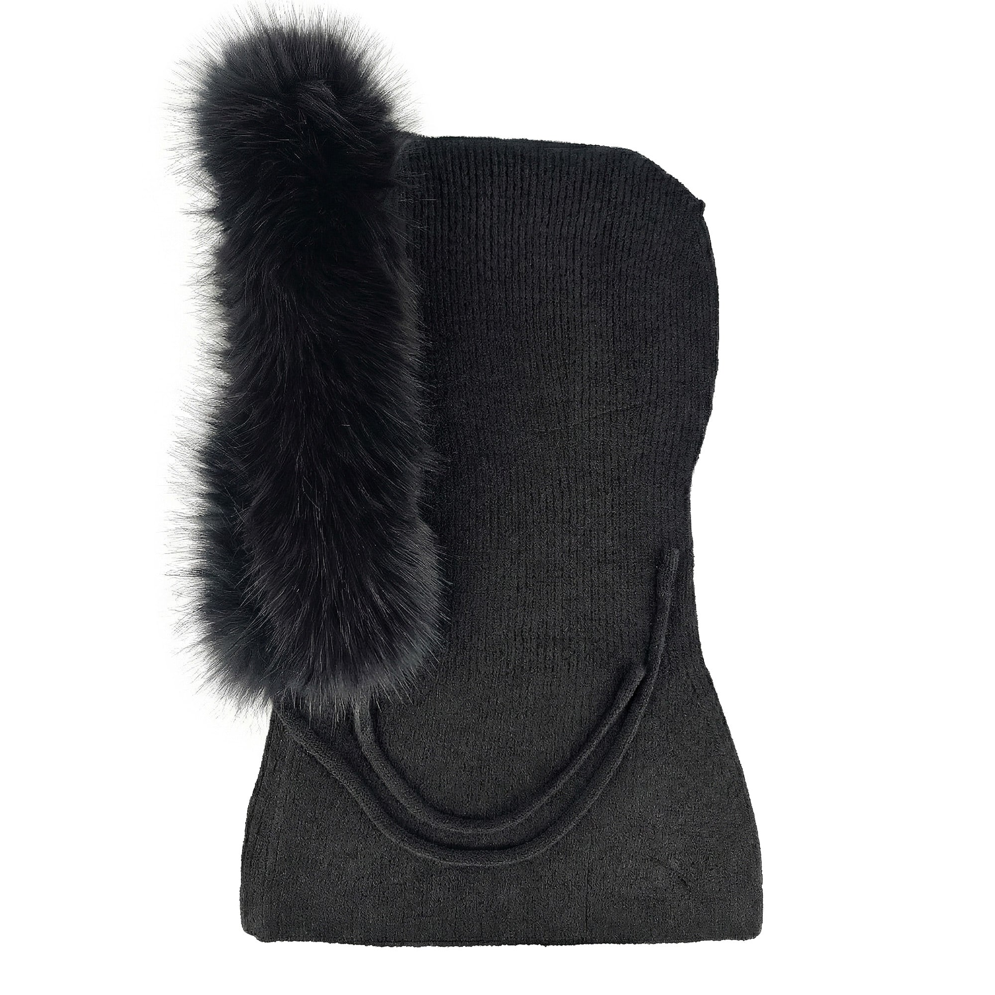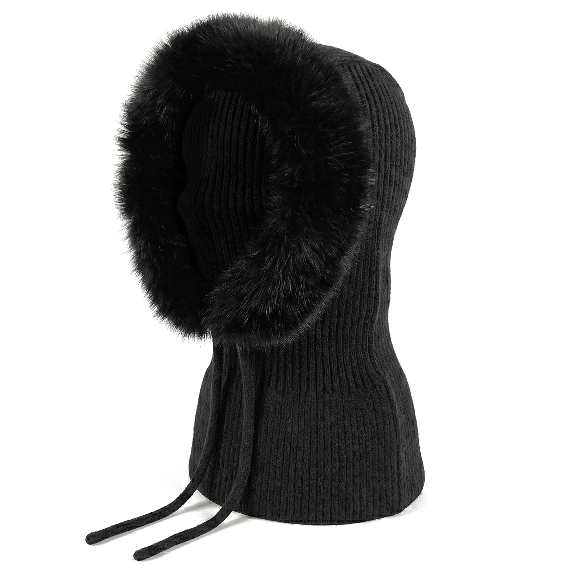 CZARNY KAPTUR komin BALACLAVA z FUTERKIEM kominiarka CZAPKA damska