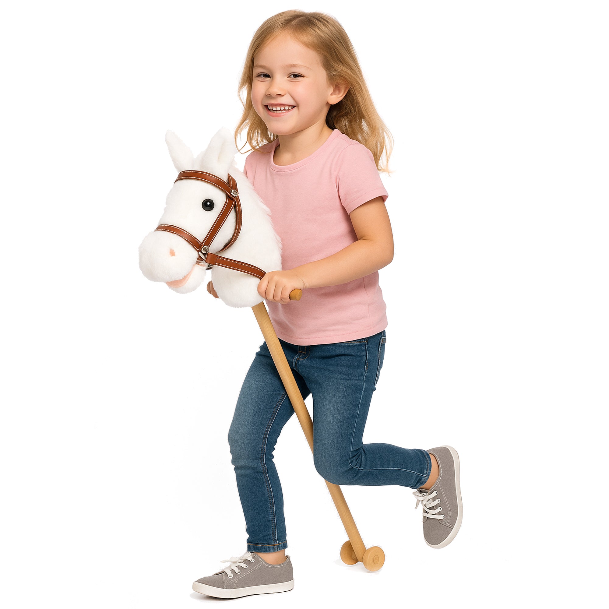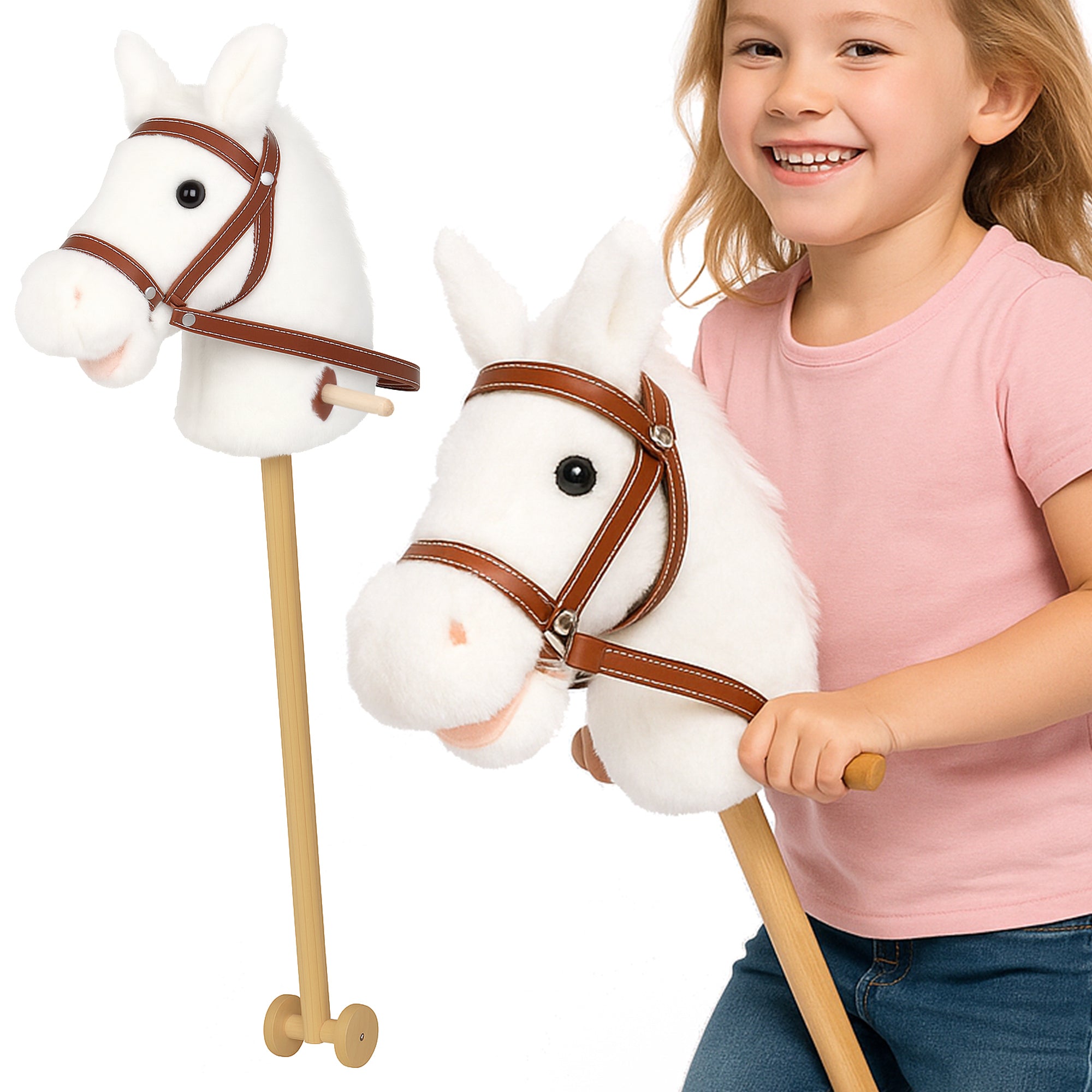HOBBY HORSE Duży koń na kiju (kółka / na baterie) Biały A3