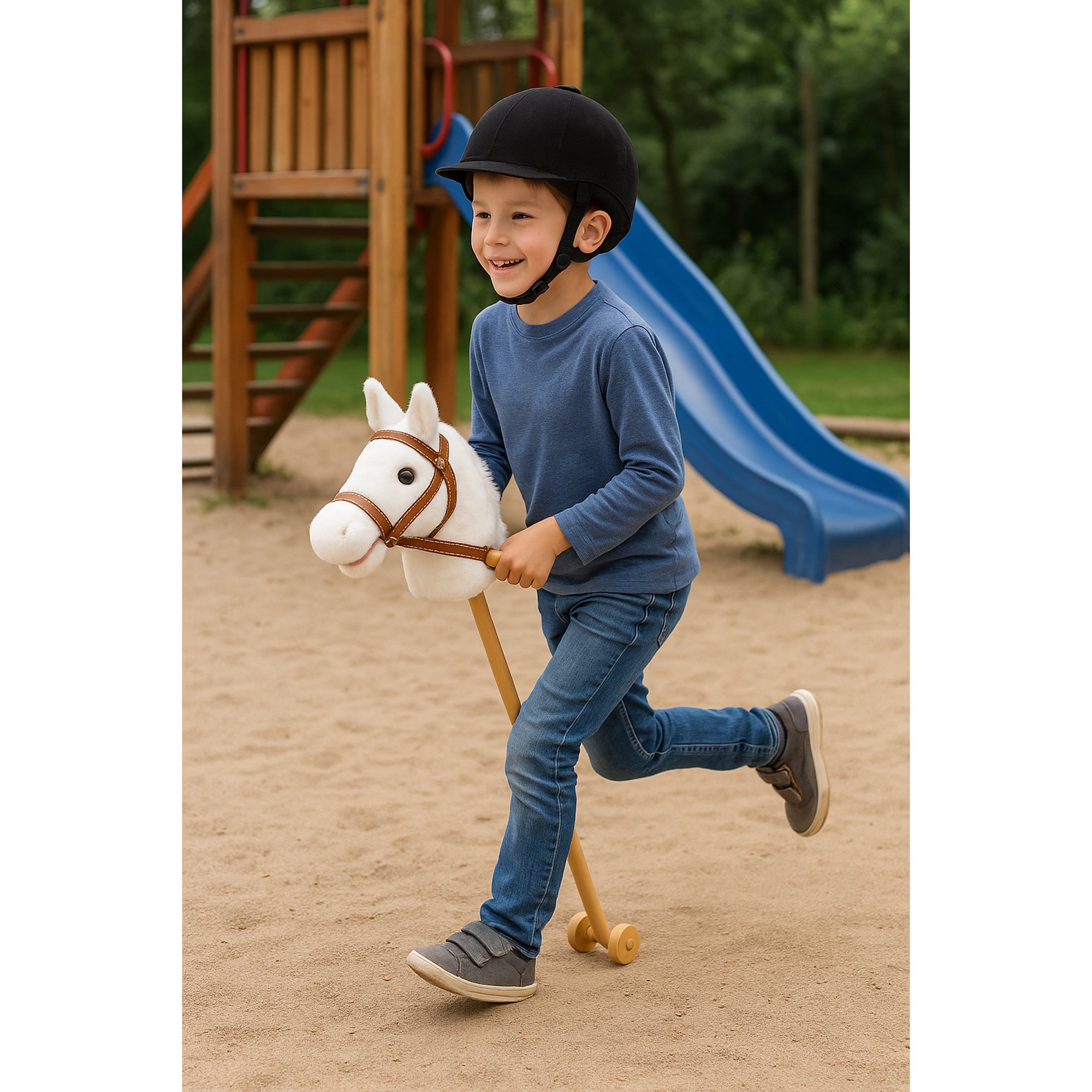 Rozpędź dziecięcą wyobraźnię z uroczym konikiem hobbystycznym! Ta klasyczna zabawka w nowoczesnym wydaniu zachwyca dopracowanymi detalami – twarda, biała głowa konia z białą grzywą, realistyczną uzdą i przyjaznym spojrzeniem zaprasza do wspólnej przygody. Drewniany kijek z uchwytami i rolkami umożliwia płynne „galopowanie” po domu i ogrodzie, a dzięki funkcji dźwięku zabawa staje się jeszcze bardziej realistyczna – wystarczy nacisnąć jedno ucho, by usłyszeć rżenie i galop konika! Wysoka jakość wykonania oraz wymienne baterie zapewniają trwałość i długotrwałą radość z użytkowania. Teraz nic nie stoi na przeszkodzie, aby zorganizować wyścig przez wzgórza i doliny! Idealne dla małych miłośników koni, hobby horse to fantastyczny sposób na rozwijanie wyobraźni i aktywność fizyczną.