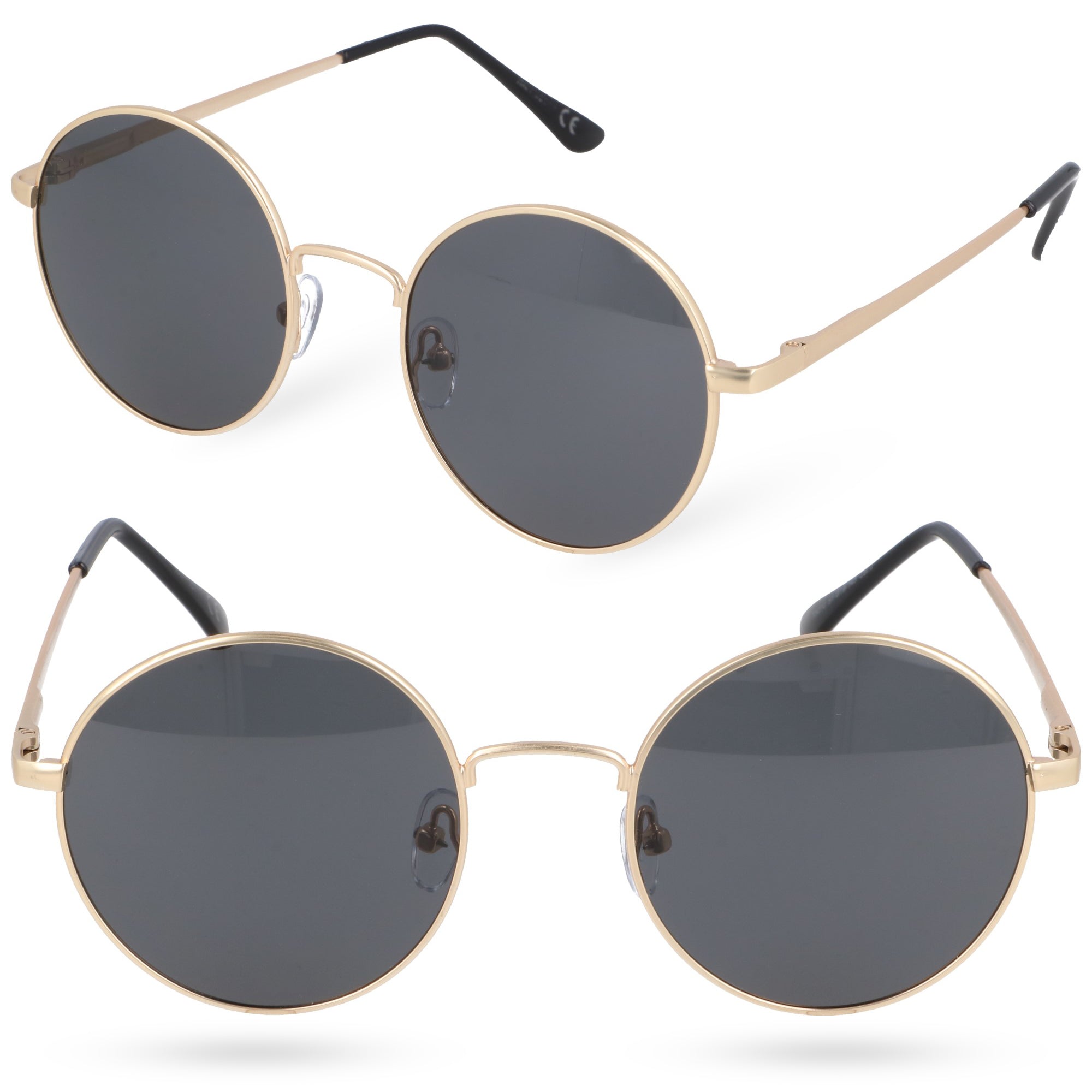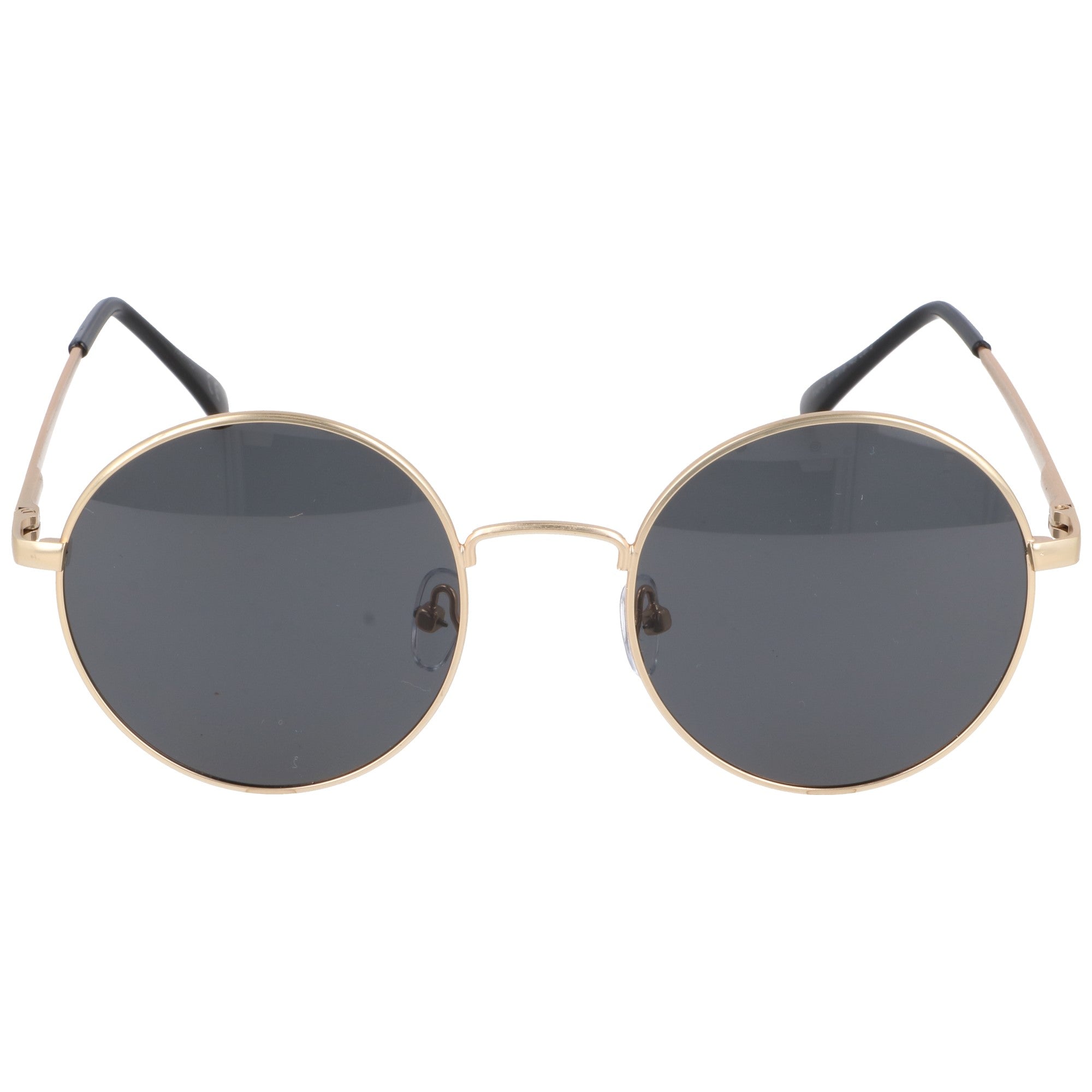 Okrągłe okulary przeciwsłoneczne w stylu retro LENNOX GOLD to metalowy model o fasonie klasycznych lenonek. Przeznaczone dla dorosłych oprawki unisex w złotym kolorze połączono z czarnymi soczewkami. Zastosowany filtr UV-400 kategorii trzeciej skutecznie chroni wzrok, a regulowane noski i elastyczne zauszniki z systemem flex zapewniają stabilne dopasowanie do twarzy.