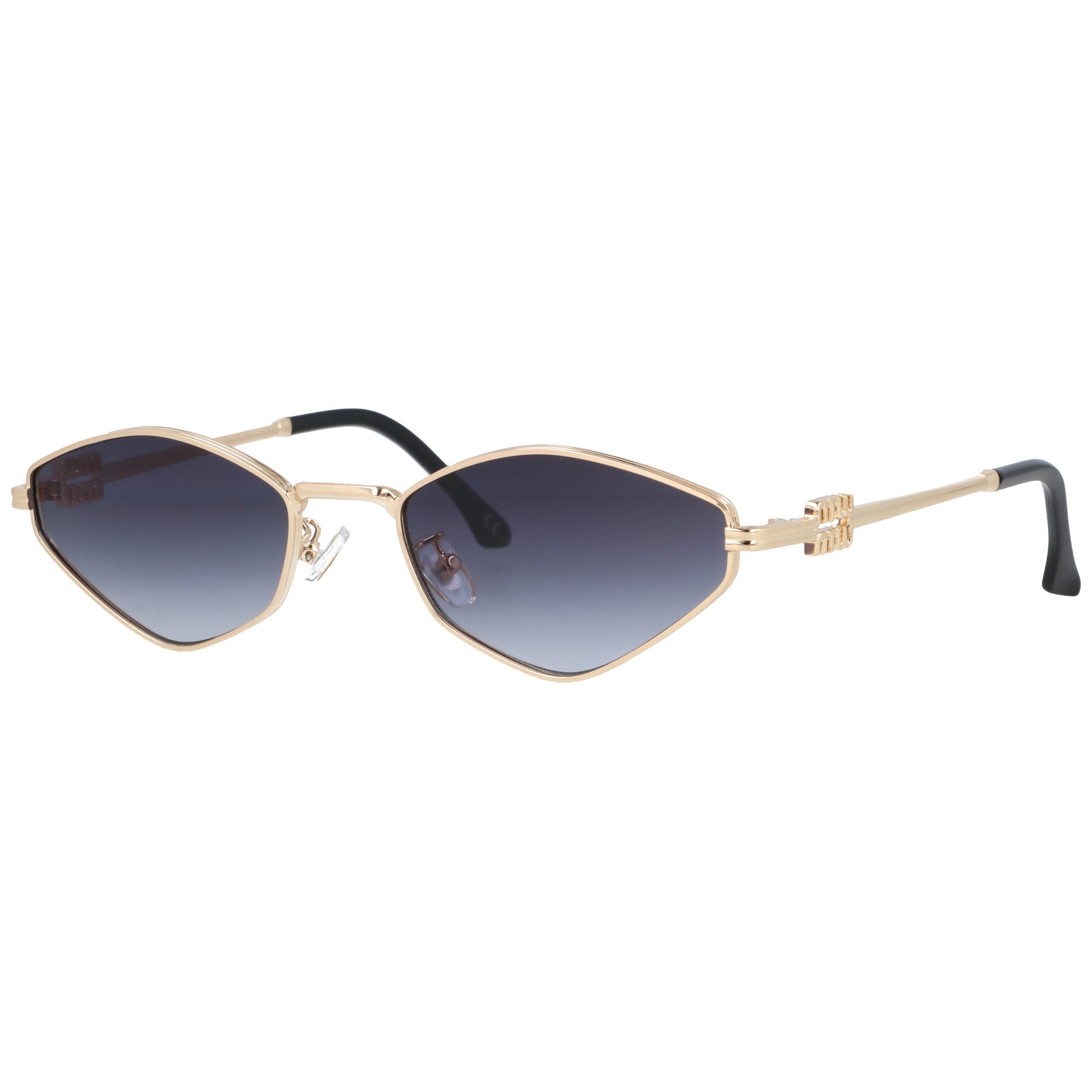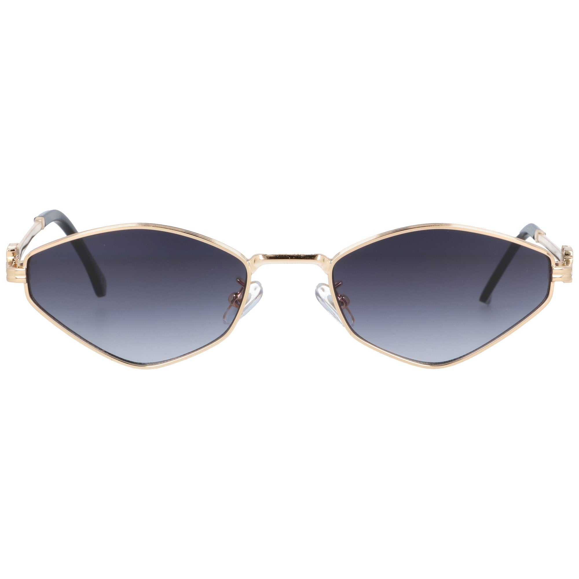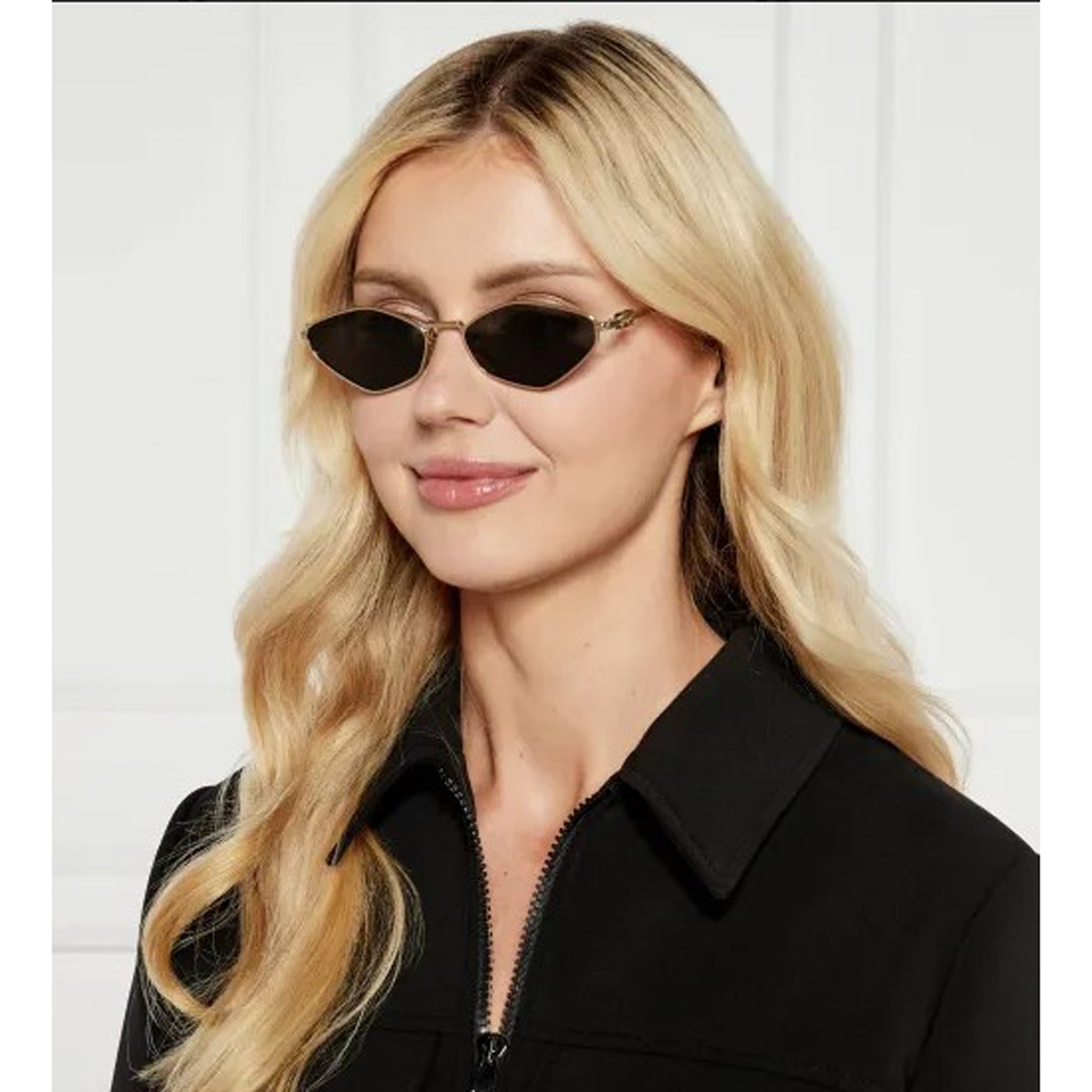 Te okulary przeciwsłoneczne to połączenie futurystycznego stylu z klasyczną elegancją. Ich nietuzinkowy, geometryczny kształt szkieł przyciąga wzrok i nadaje całości wyjątkowego charakteru. Metaliczna oprawka w złotym odcieniu dodaje lekkości i subtelnego blasku, idealnie komponując się z gradalnie przyciemnianymi szkłami. Dzięki solidnym zawiasom można je pewnie użytkować.