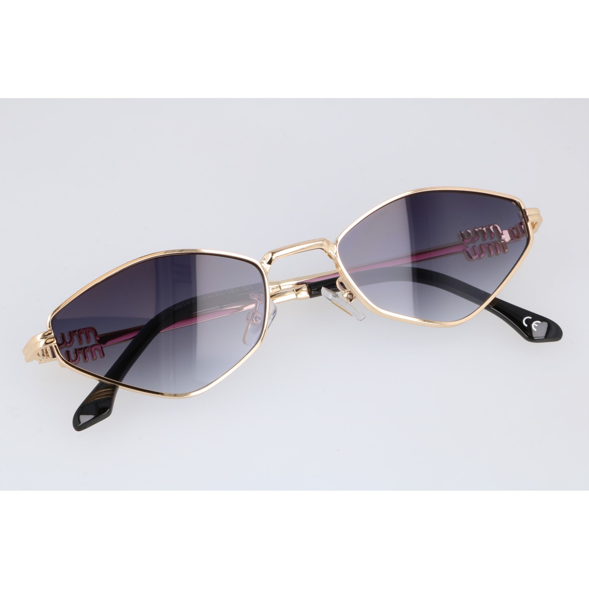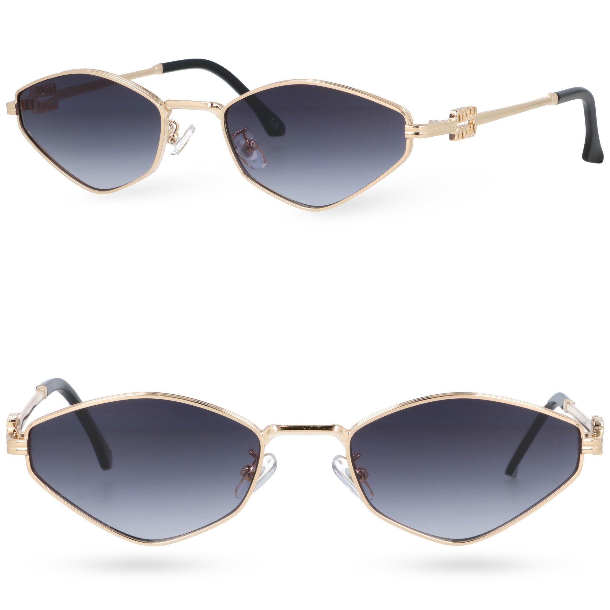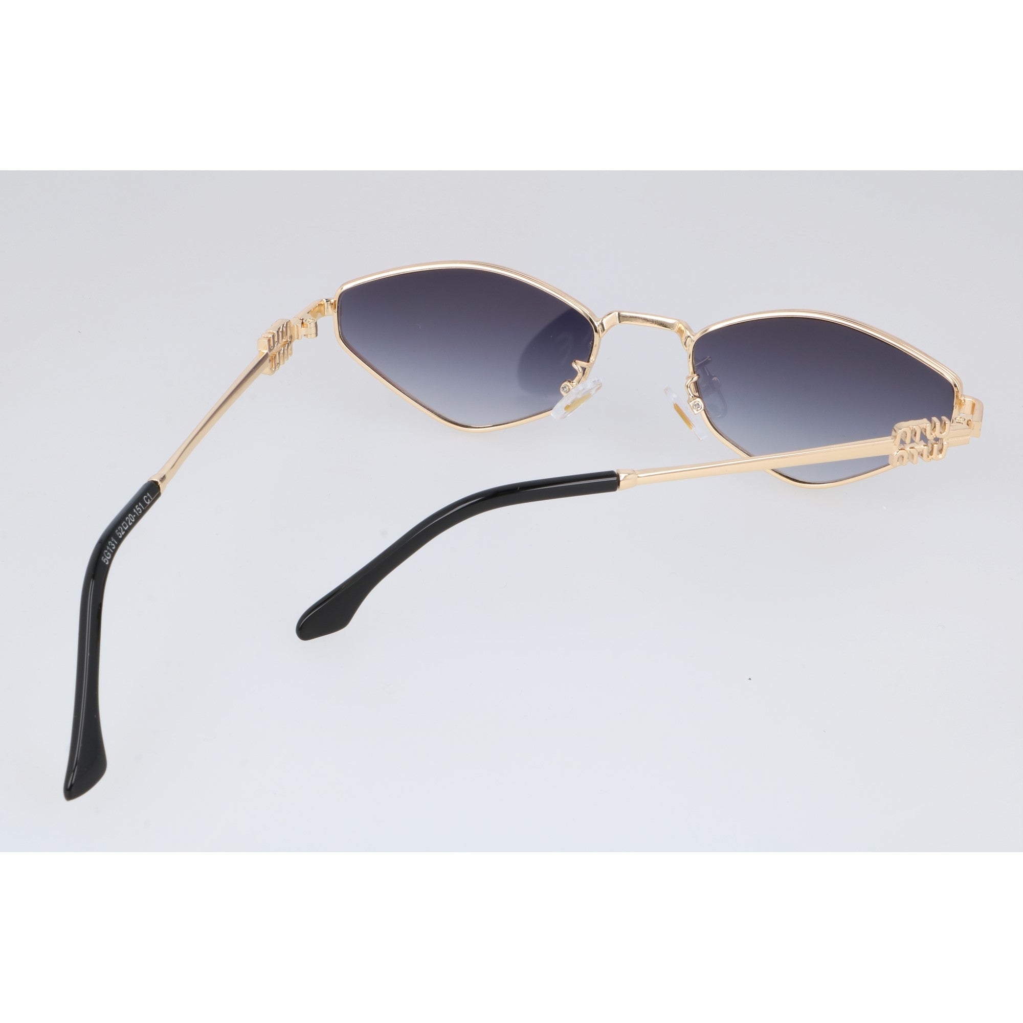 Te okulary przeciwsłoneczne to połączenie futurystycznego stylu z klasyczną elegancją. Ich nietuzinkowy, geometryczny kształt szkieł przyciąga wzrok i nadaje całości wyjątkowego charakteru. Metaliczna oprawka w złotym odcieniu dodaje lekkości i subtelnego blasku, idealnie komponując się z gradalnie przyciemnianymi szkłami. Dzięki solidnym zawiasom można je pewnie użytkować.