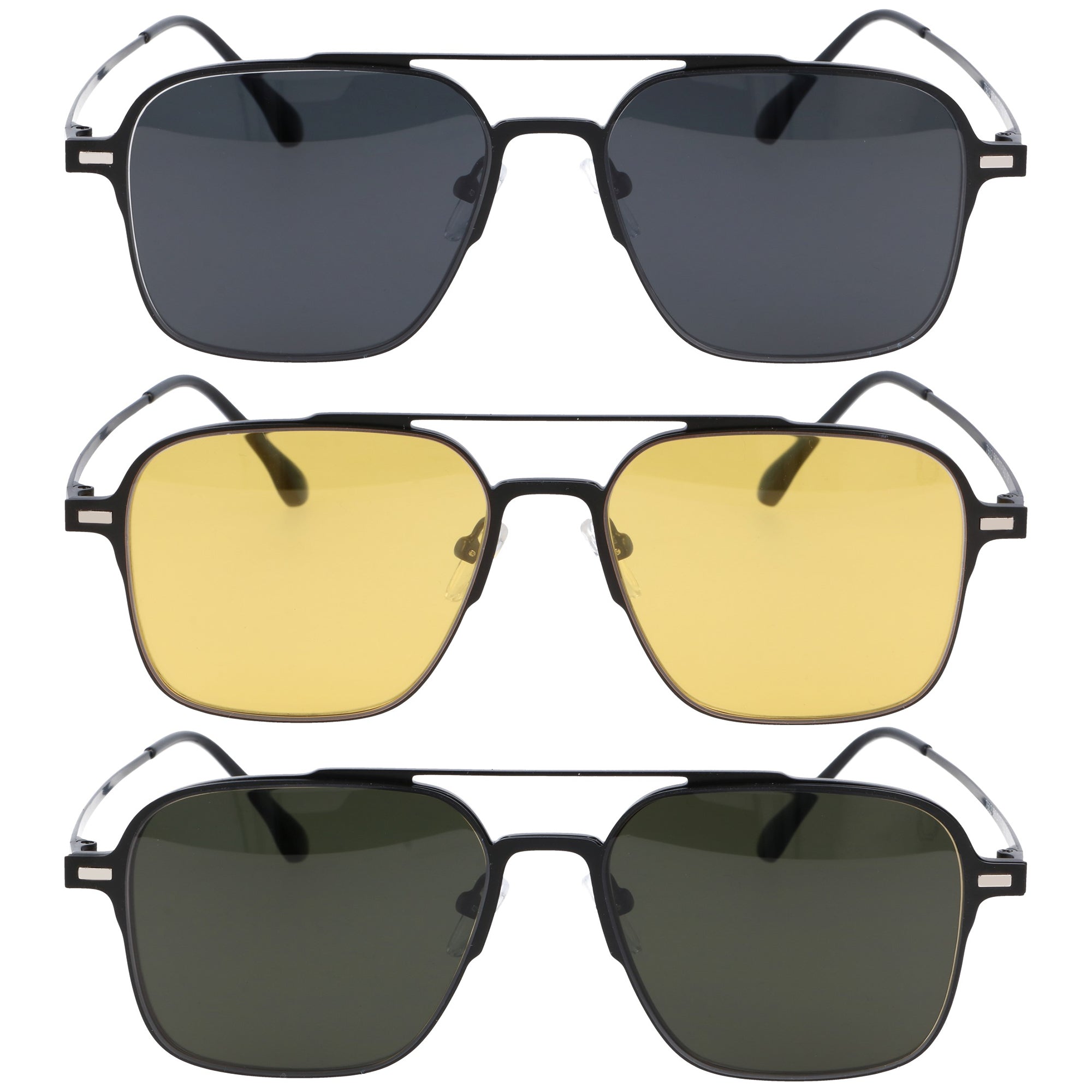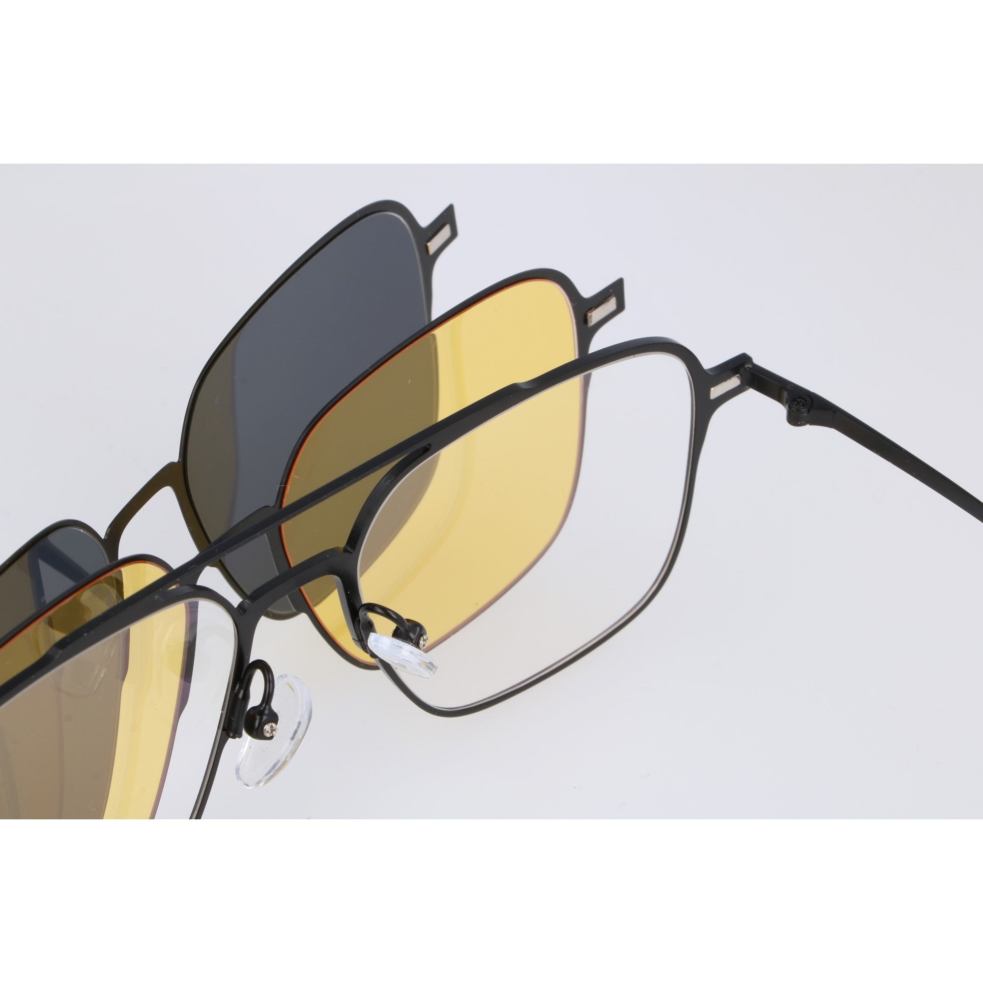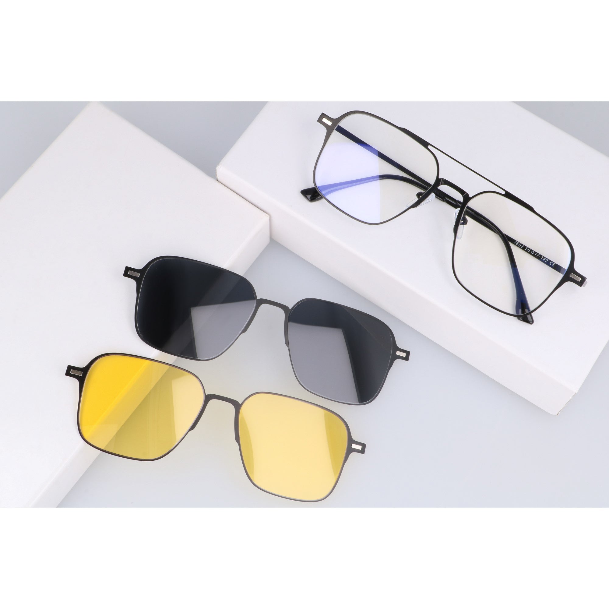Odkryj wszechstronność i funkcjonalność w jednym stylowym wydaniu! Nasze oprawki korekcyjne CLIP ON w kształcie pilotki to rozwiązanie dla osób, które cenią praktyczność i nowoczesny design. W zestawie znajdziesz okulary zerówki z filtrem blue light oraz dwie magnetyczne nakładki: czarną polaryzacyjną, idealną na słoneczne dni, oraz żółtą, stworzoną z myślą o komfortowej jeździe nocą. System magnetycznego mocowania po całej frontowej oprawce pozwala na błyskawiczną zmianę nakładek, a nawet nałożenie dwóch jednocześnie. Solidna, czarna metalowa oprawka z regulowanymi silikonowymi noskami i trwałymi metalowymi zawiasami doskonale sprawdzi się zarówno dla kobiet, jak i mężczyzn. Okulary posiadają specjalnie zaprojektowane oprawki, dzięki którym bez problemu można wstawić szkła korekcyjne u optyka.