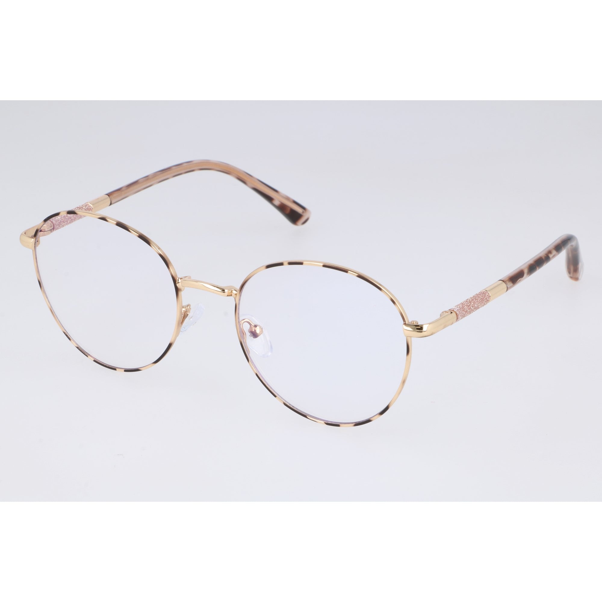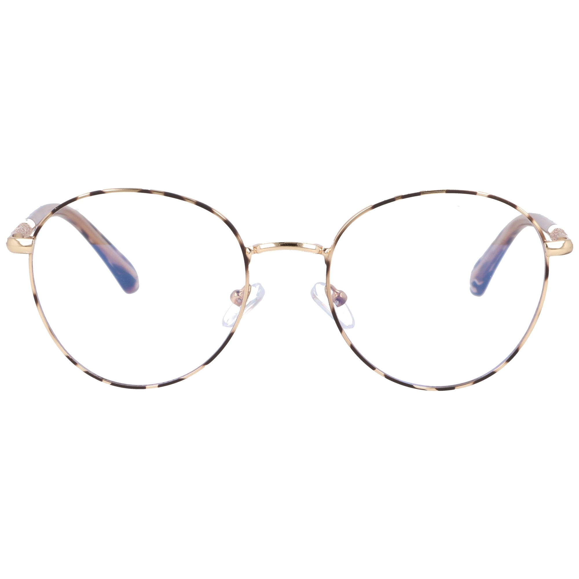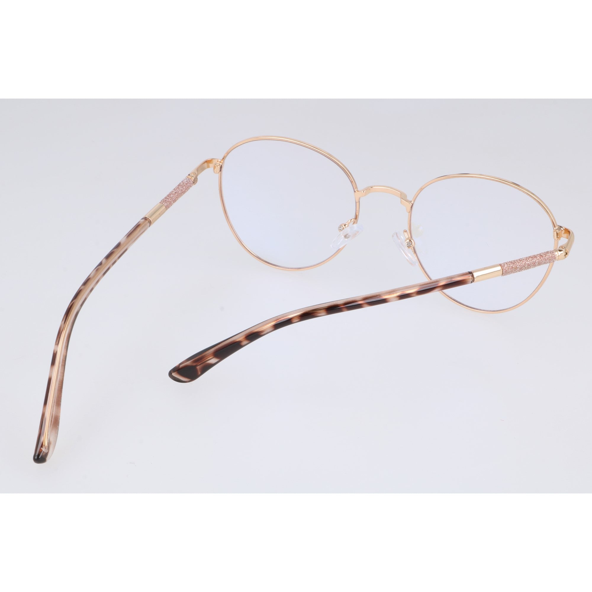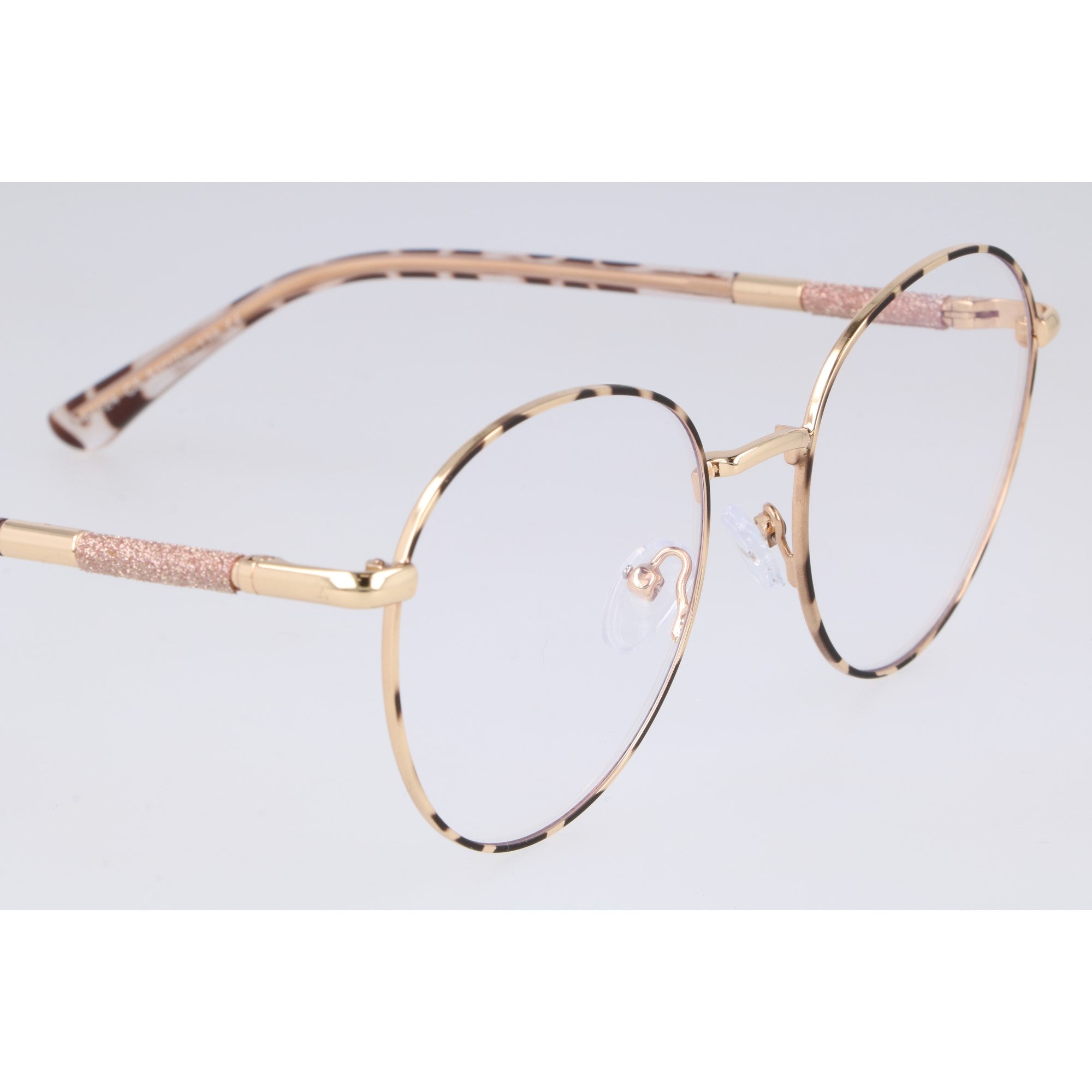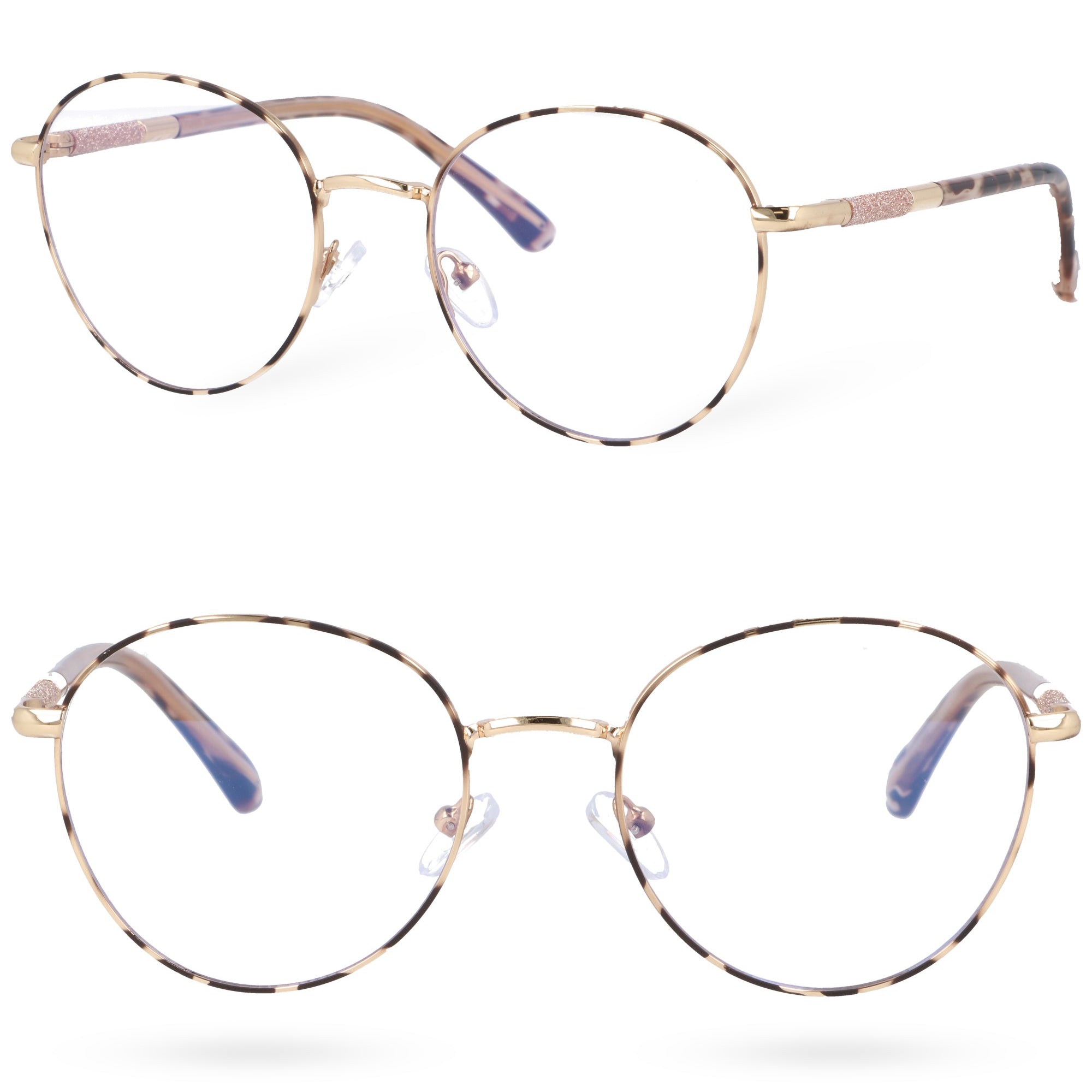 Eleganckie okulary damskie zerówki z filtrem blue light to doskonały wybór dla kobiet ceniących styl i komfort. Złota, owalna oprawka subtelnie podkreśla rysy twarzy, a delikatne zdobienia z drobnych kryształków na zausznikach dodają luksusowego charakteru. Rozkręcalne soczewki umożliwiają łatwą wymianę na szkła korekcyjne u optyka, co czyni je praktycznym rozwiązaniem. Regulowane silikonowe noski i elastyczne zawiasy typu flex zapewniają wygodę noszenia przez cały dzień.