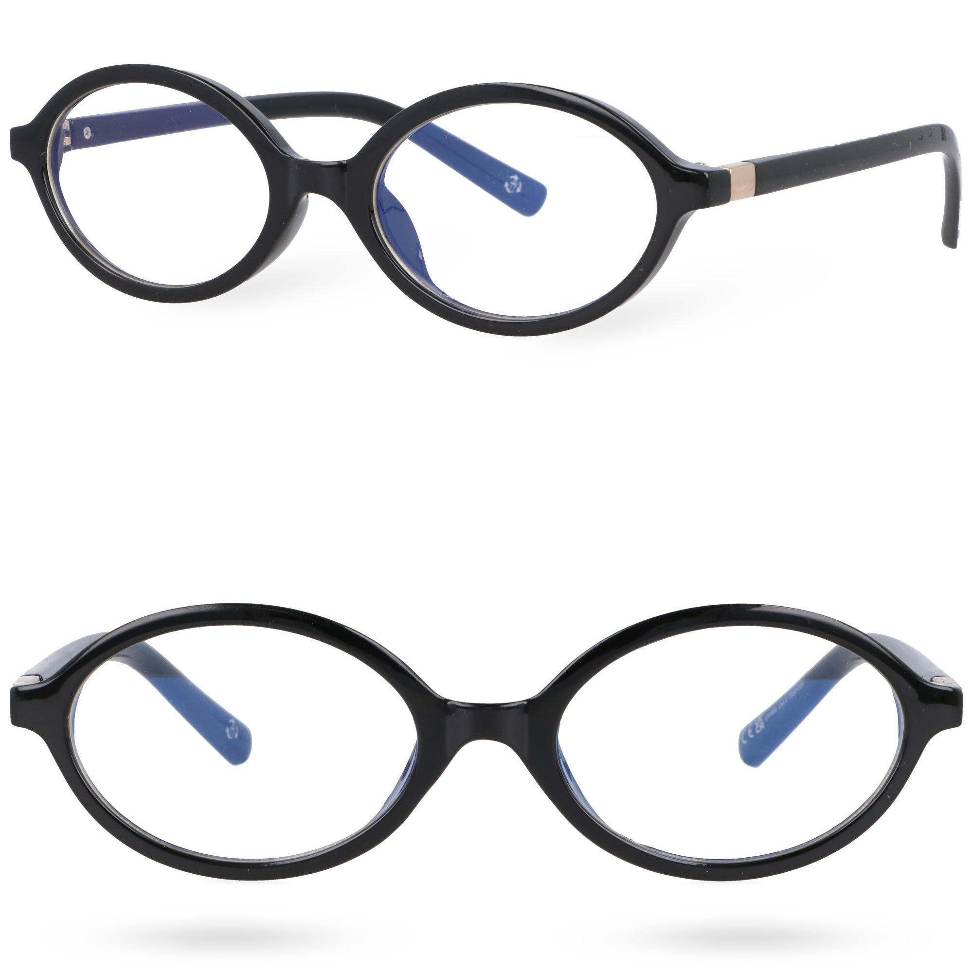 Czarne, owalne okulary zerówki OVALO to uniwersalny model unisex o casualowym charakterze retro. Pełne oprawki ze stałymi noskami wykonano z poliwęglanu. Bezbarwne szkła wyposażono w technologię blue light oraz antyrefleks, co pozwala na ich wykorzystanie do czytania i pracy przed ekranami.
