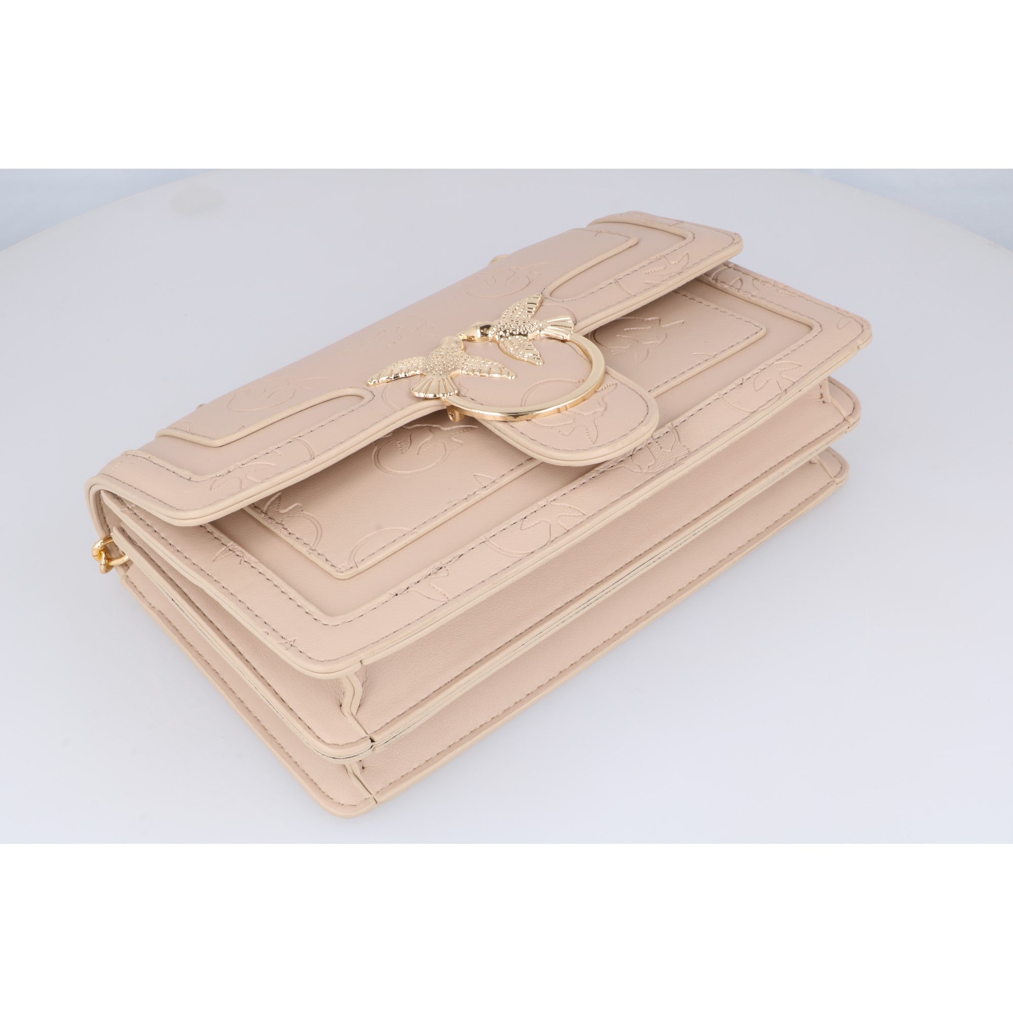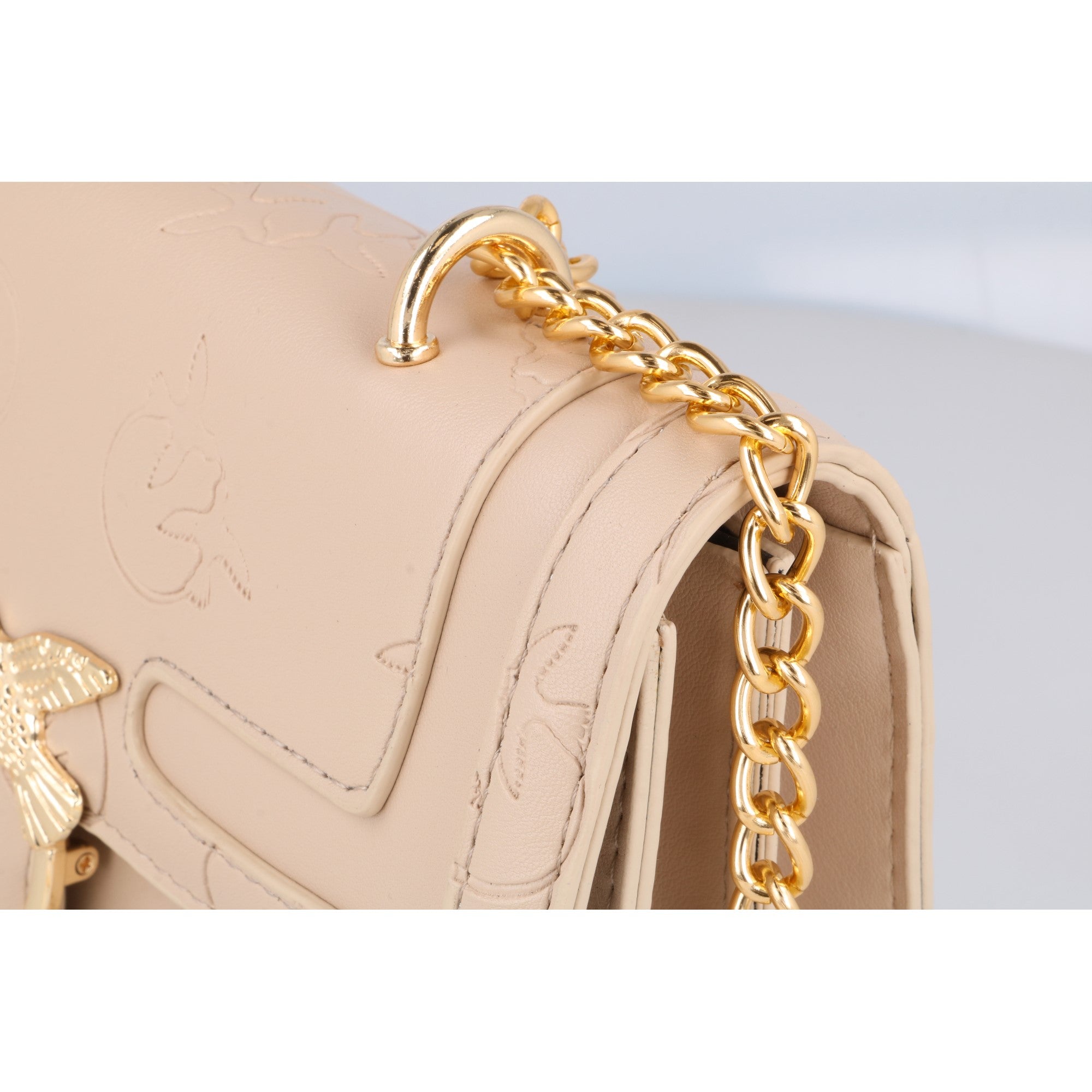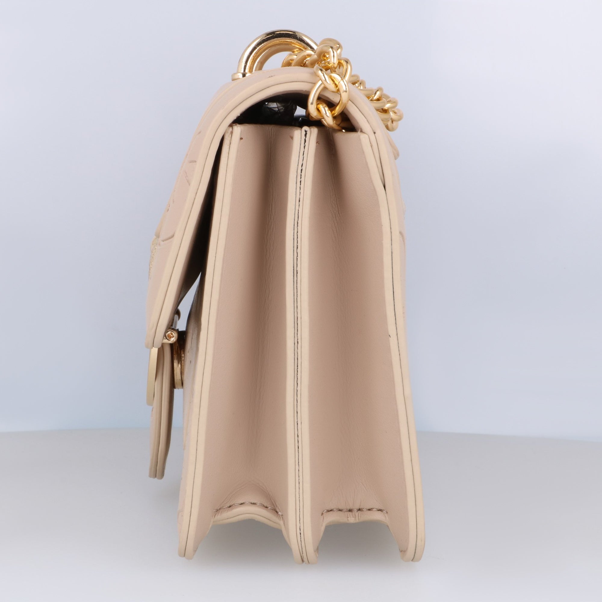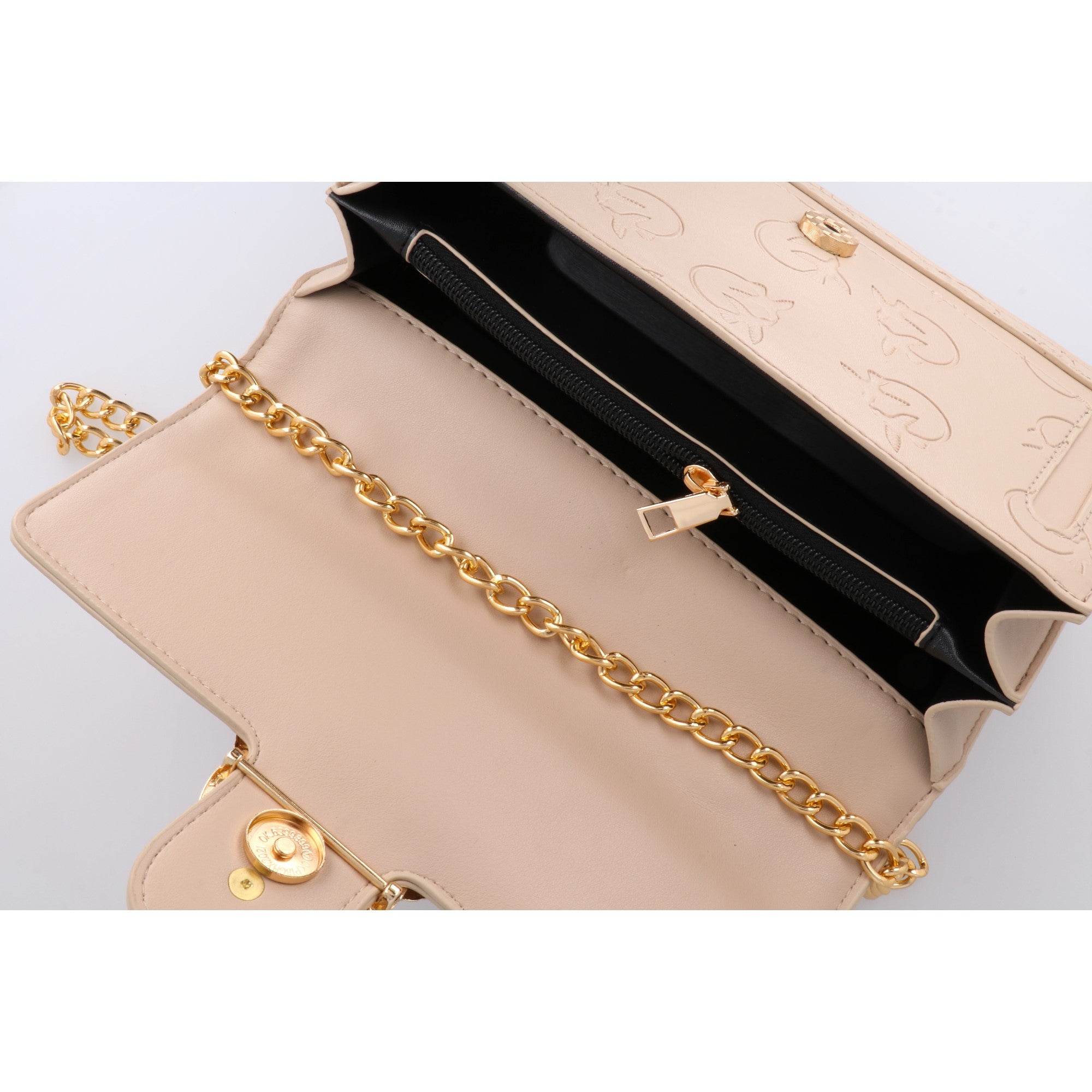Elegancka torebka wizytowa, wykonana z wysokiej jakości skóry ekologicznej, prezentuje nowoczesny design, który łączy pikowanie z subtelnym wzorem tłoczonym logo. Detale w postaci złotego łańcuszka oraz okuć dodają całości wyrafinowanego charakteru, doskonale komponując się z eleganckim stylem. Torebka przeznaczona jest do noszenia na ramię, posiada pasek/łańcuszek o długości 130 cm, co zapewnia komfort i swobodę noszenia, idealną na specjalne okazje.